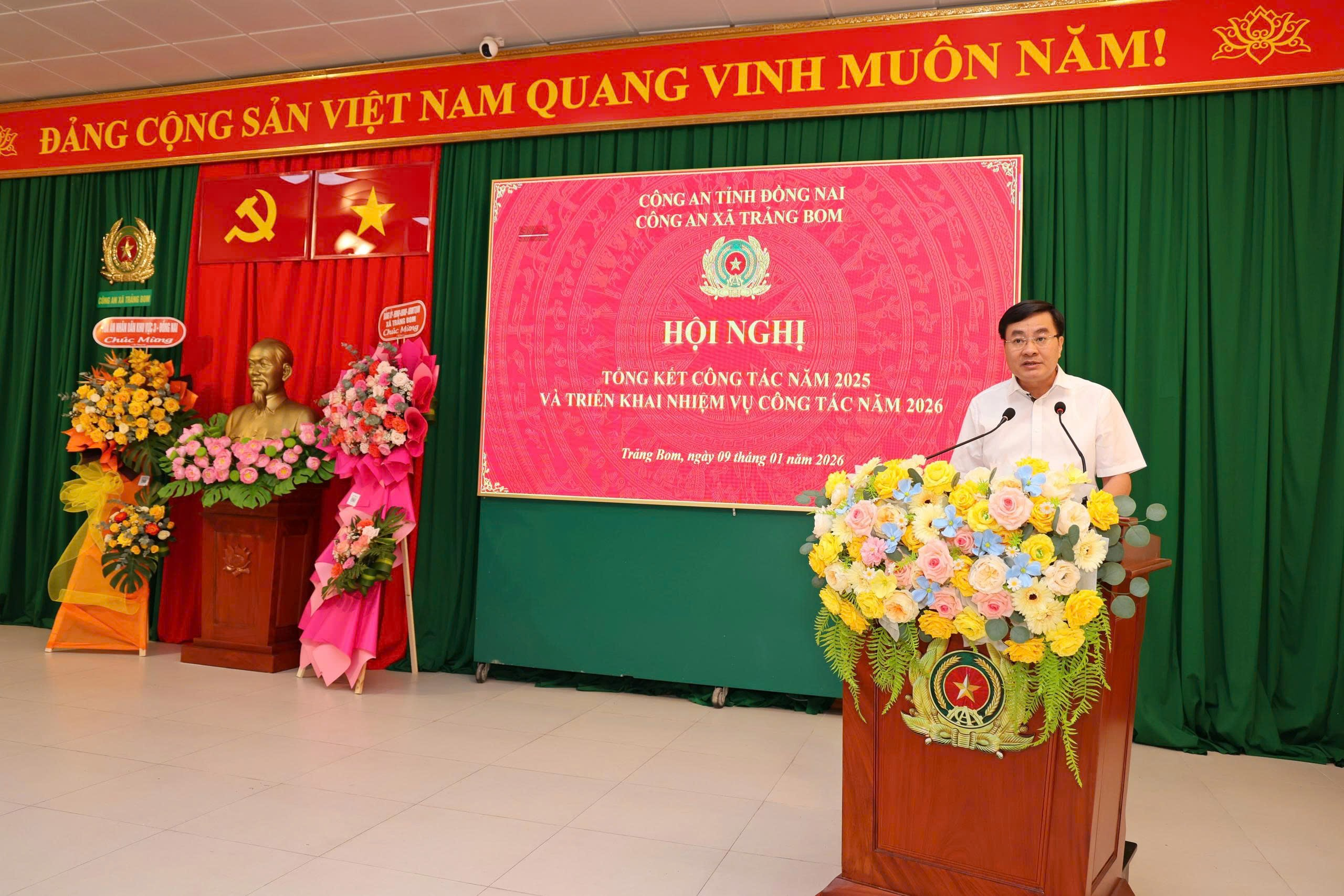 Năm 2026, Công an xã Trảng Bom tập trung rà soát, lập danh sách và đấu tranh triệt phá các băng nhóm tội phạm, đặc biệt là tội phạm hoạt động lưu động tại các địa bàn giáp ranh. Tiếp tục thực hiện các giải pháp kiềm chế, kéo giảm tai nạn và ùn tắc giao thông. Đổi mới công tác tuyên truyền phù hợp với từng đối tượng để nâng cao ý thức chấp hành Luật Giao thông đường bộ, đường sắt và triển khai kế hoạch "An toàn giao thông". Xử lý nghiêm các hành vi vi phạm về pháo (đặc biệt trong các dịp lễ, Tết), tội phạm tham nhũng, trốn thuế, hàng giả, hàng kém chất lượng. Đồng thời, phát hiện và xử lý kịp thời các hành vi gây ô nhiễm môi trường ảnh hưởng đến đời sống nhân dân. Thực hiện tốt công tác quản lý nhân hộ khẩu, đẩy mạnh xây dựng Cơ sở dữ liệu quốc gia về dân cư. Tuyên truyền, phổ biến pháp luật để người dân nâng cao tinh thần cảnh giác, chủ động tố giác tội phạm. Triển khai sâu rộng phong trào bảo vệ an ninh Tổ quốc tại các cơ quan, doanh nghiệp, nhà trường và địa bàn xã. Tập trung xây dựng lực lượng Công an trong sạch, vững mạnh, chính quy, tinh nhuệ và hiện đại.