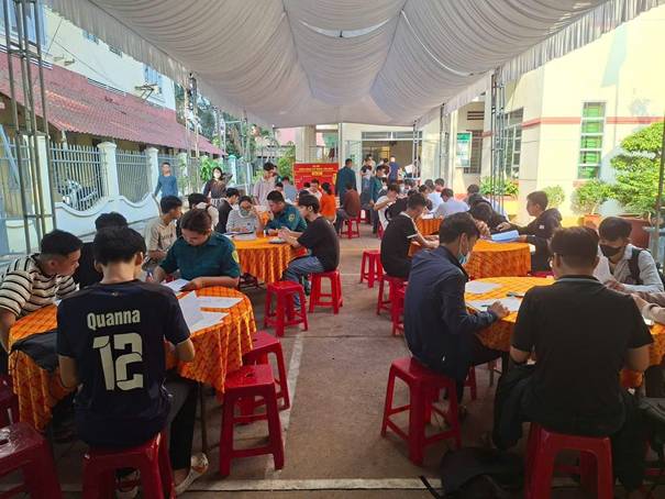 Các Thanh niên được hướng dẫn điền phiếu thông tin
