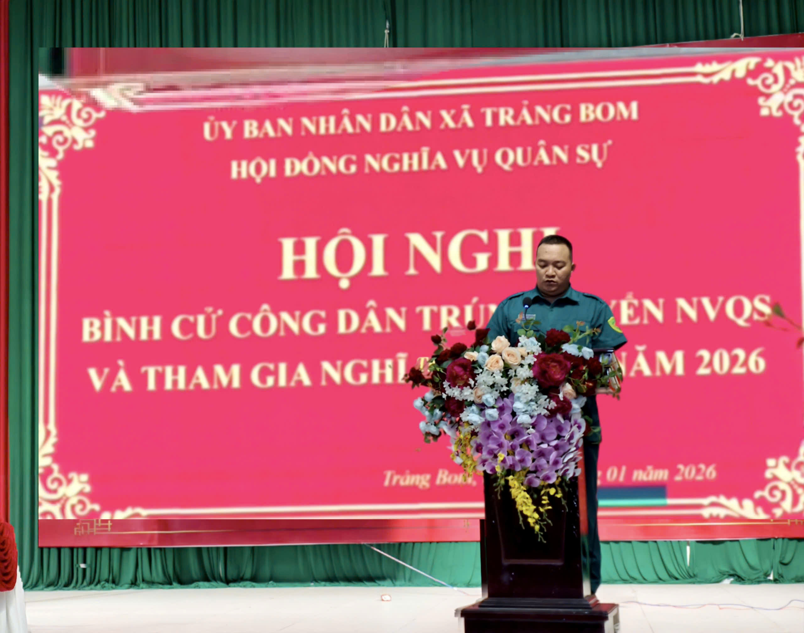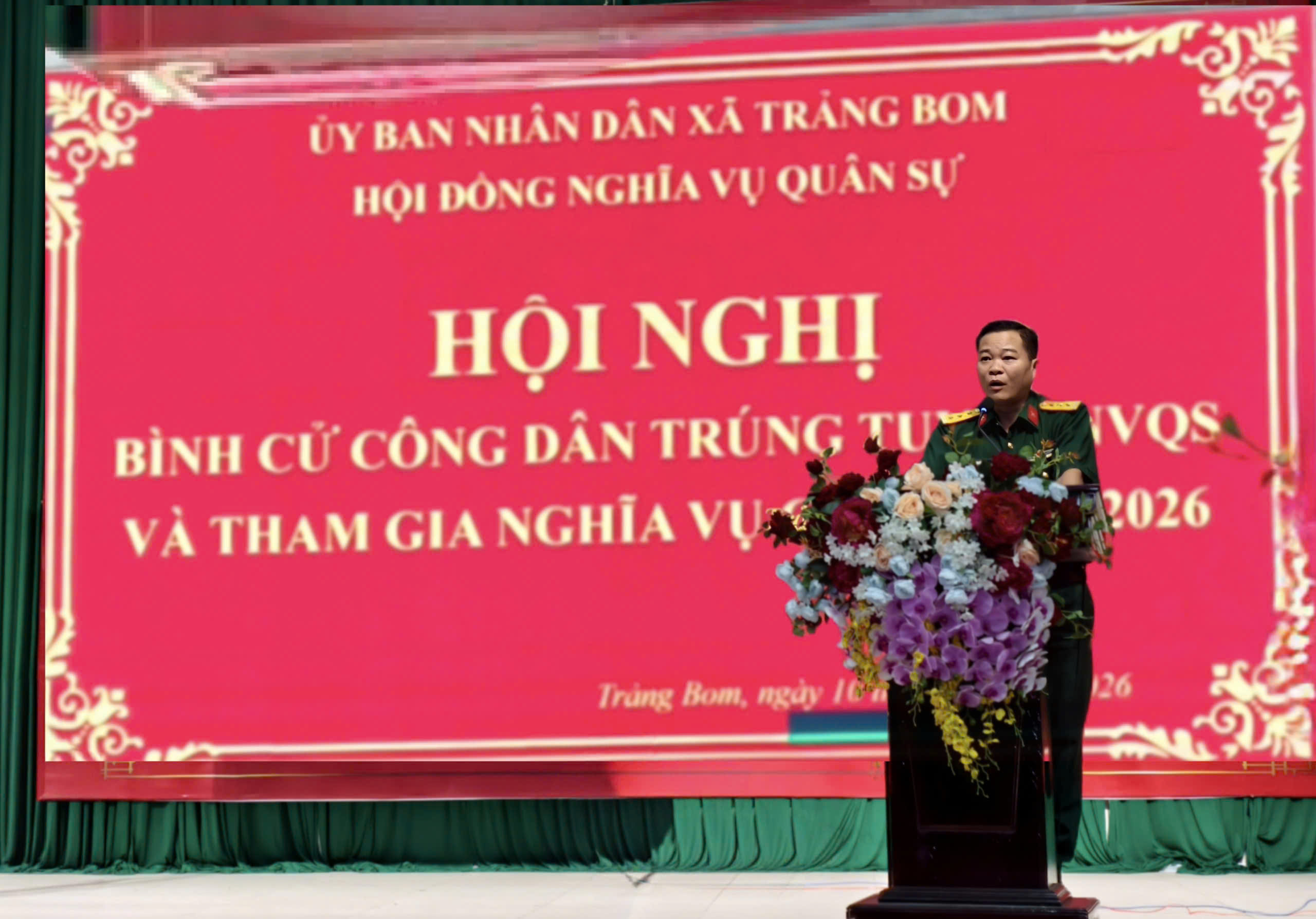 Phát biểu tại hội nghị Thượng tá Phùng Đức Long – Phó Chỉ huy trưởng Ban Chỉ huy phòng thủ khư vực 1 – Long Thành đánh giá cao công tác bình cử công dân trúng tuyển nghĩa vụ quân sự và tham gia nghĩa vụ công an nhân dân năm 2026 tại xã Trảng Bom. Đồng chí cũng đề nghị Hội đồng nghĩa vụ quân sự xã rà soát kỹ từng hoàn cảnh của thanh niên xin tạm hoãn đảm bảo đúng theo luật định. Bên cạnh đó, quan tâm động viên về vật chất, tinh thần cho những thanh niên sẵn sàng nhập ngũ năm 2026, chú trọng những thanh niên có hoàn cảnh khó khăn.