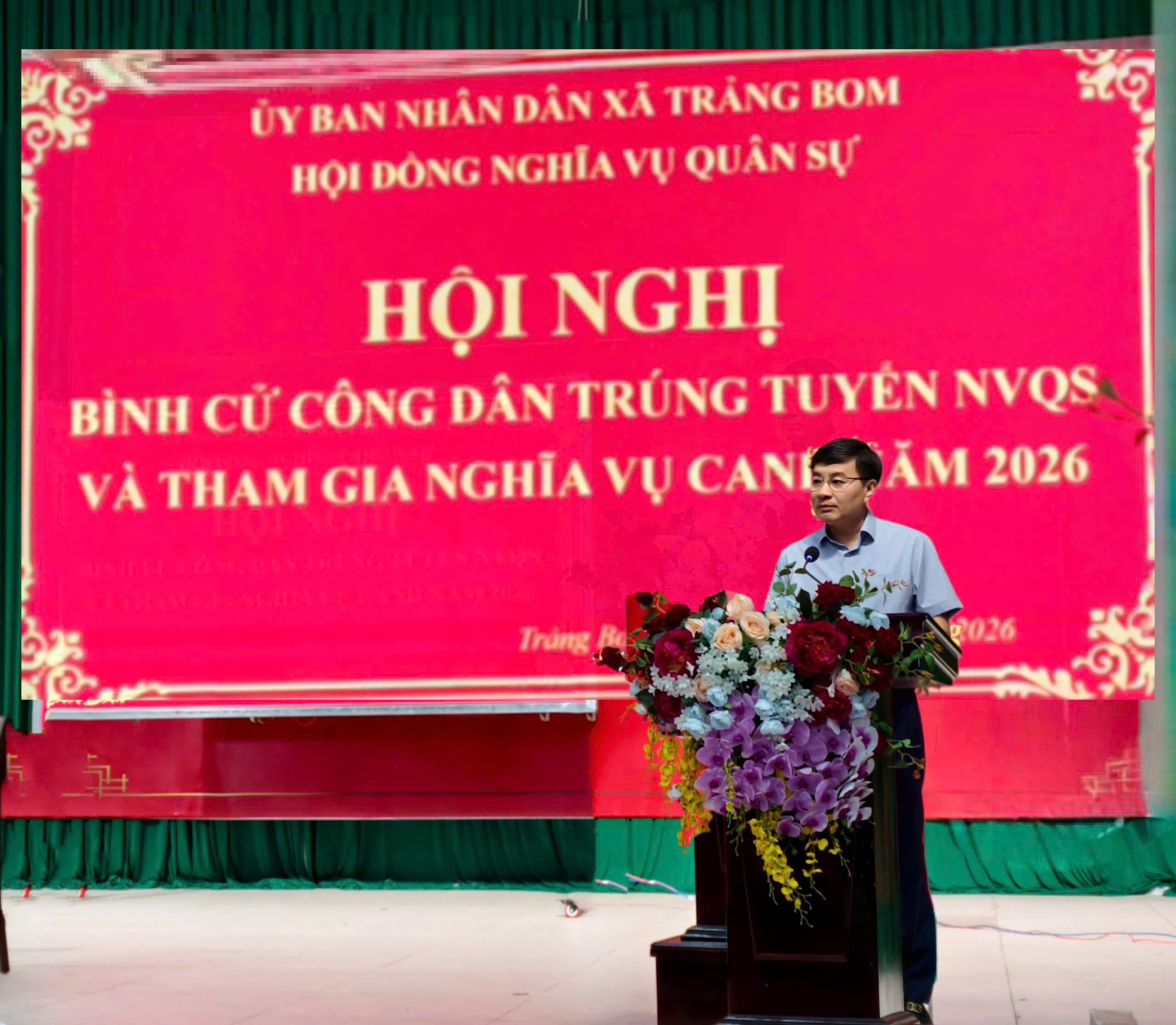 Phát biểu kết luận hội nghị, Đồng chí Lê Ngọc Tiên – Phó Bí thư Đảng uỷ, Chủ tịch UBND, chủ tịch Hội đồng nghĩa vụ quân sự xã Trảng Bom nhấn mạnh: công tác tuyển quân là nhiệm vụ chính trị quan trọng, đề nghị các thành viên Hội đồng tiếp tục phối hợp chặt chẽ, làm tốt công tác tuyên truyền, quản lý công dân trúng tuyển, bảo đảm hoàn thành 100% chỉ tiêu giao quân năm 2026. Đồng chí cũng mong rằng các công dân trúng tuyển với trách nhiệm của tuổi trẻ, với tinh thần nhiệt huyết của thanh niên, phát huy truyền thống gia đình, truyền thống quê hương Trảng Bom anh hùng tiếp bước cha anh hăng hái thi hành nghĩa vụ quân sự và thực hiện nghĩa vụ tham gia Công an nhân dân năm 2026, góp một phần công sức của mình trong xây dựng Quân đội và bảo vệ tổ quốc Việt Nam XHCN.