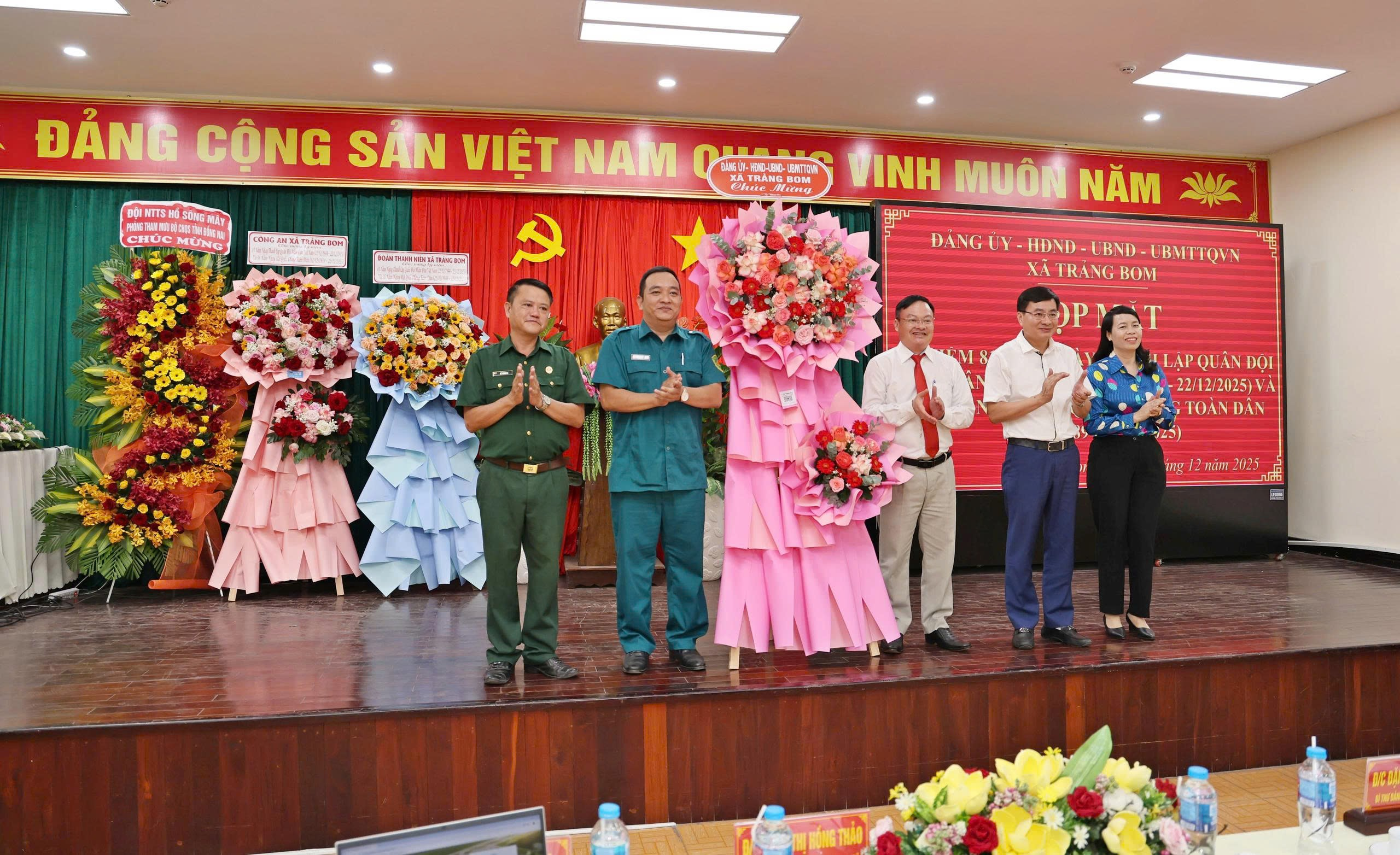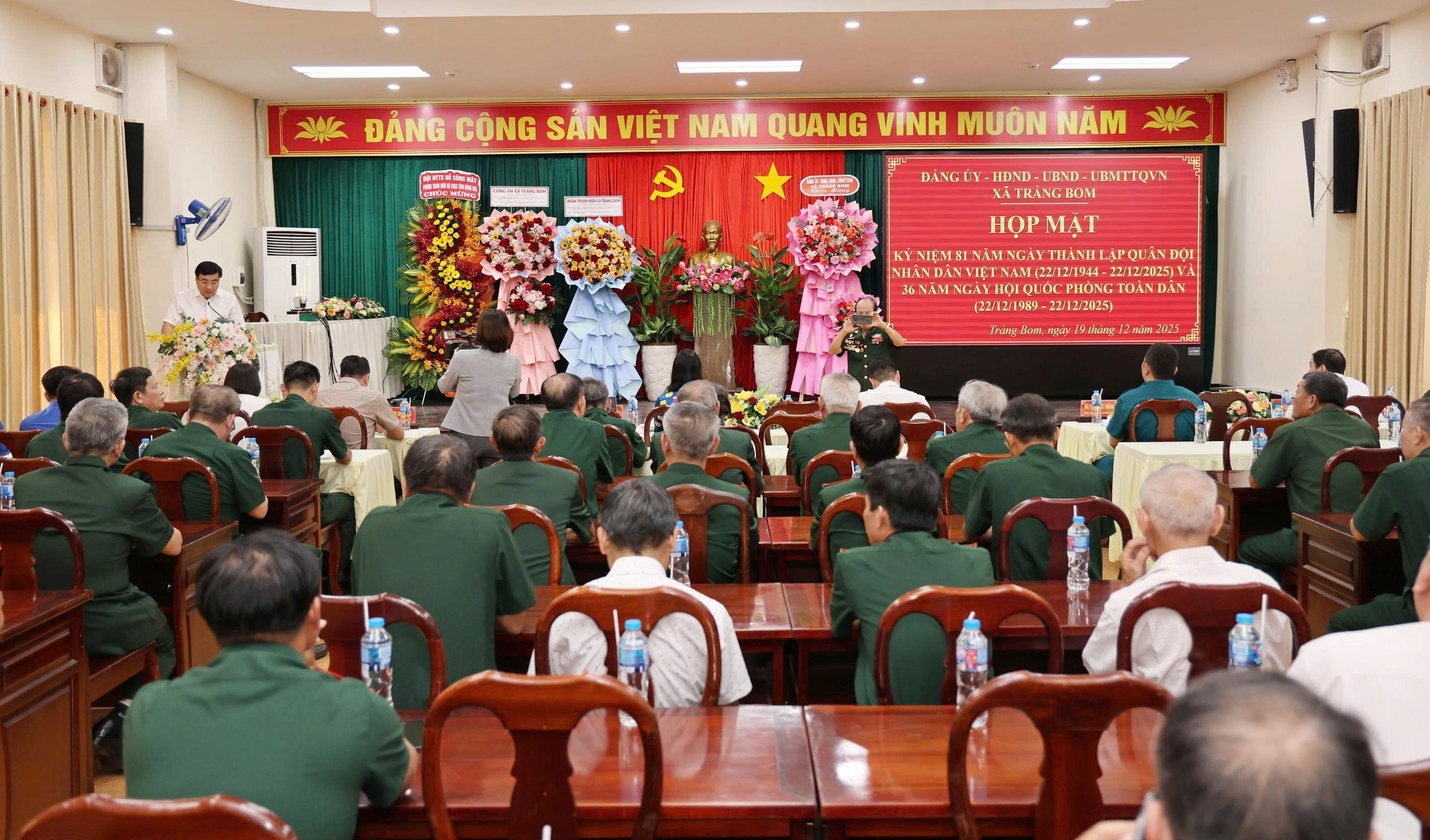 Tiếp nối truyền thống vẻ vang đó, thời gian qua, lực lượng vũ trang xã Trảng Bom đã làm tốt công tác tham mưu cho cấp ủy, chính quyền trong xây dựng khu vực phòng thủ; xây dựng lực lượng dân quân tự vệ, dự bị động viên ngày càng vững mạnh; thực hiện nghiêm công tác tuyển chọn và gọi công dân nhập ngũ; chủ động nắm chắc tình hình, giữ vững ổn định chính trị, trật tự an toàn xã hội; tích cực tham gia phòng, chống thiên tai, cứu hộ, cứu nạn và các nhiệm vụ đột xuất khác. Đặc biệt, trong bối cảnh xã Trảng Bom mới, sau sáp nhập, lực lượng vũ trang xã đã phát huy tinh thần đoàn kết, trách nhiệm, chủ động khắc phục khó khăn, góp phần quan trọng vào việc ổn định tổ chức, giữ vững quốc phòng - an ninh, tạo nền tảng thuận lợi cho phát triển kinh tế - xã hội và nâng cao đời sống Nhân dân.