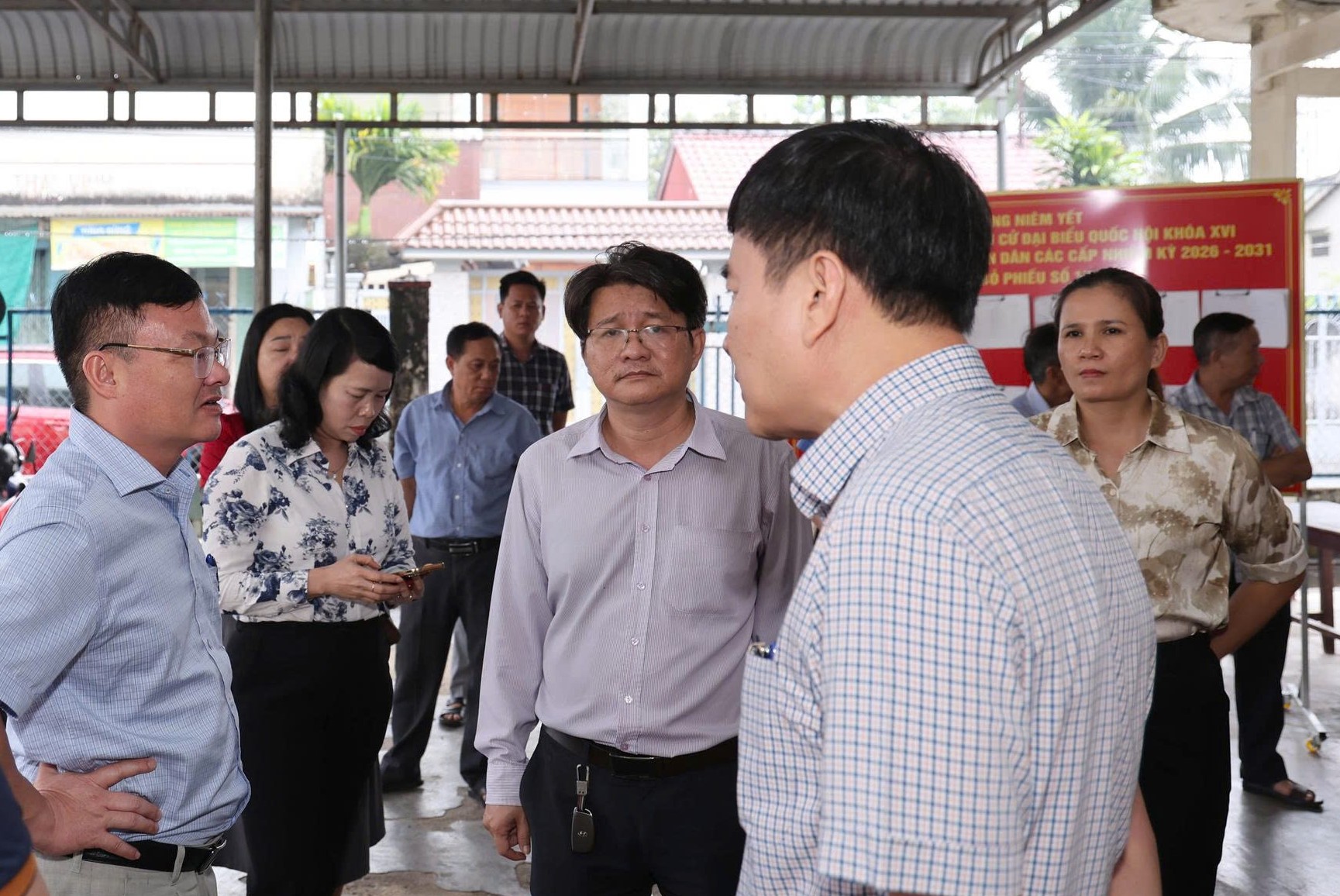 Đoàn kiểm tra trao đổi ý kiến tại Khu vực bỏ phiếu số 17
