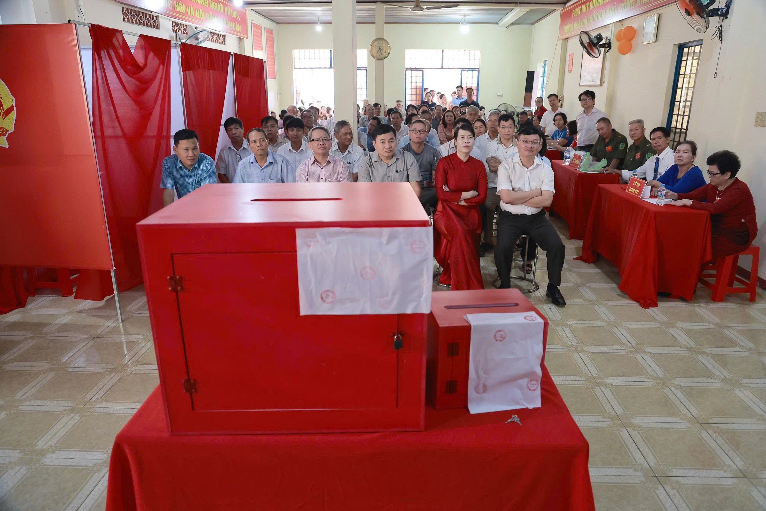 Tổ bầu cử tiến hành kiểm tra và niêm phong hòm phiếu chính, hòm phiếu phụ trước sự chứng kiến của cử tri, đảm bảo tính minh bạch, khách quan tuyệt đối theo nguyên tắc bỏ phiếu kín.