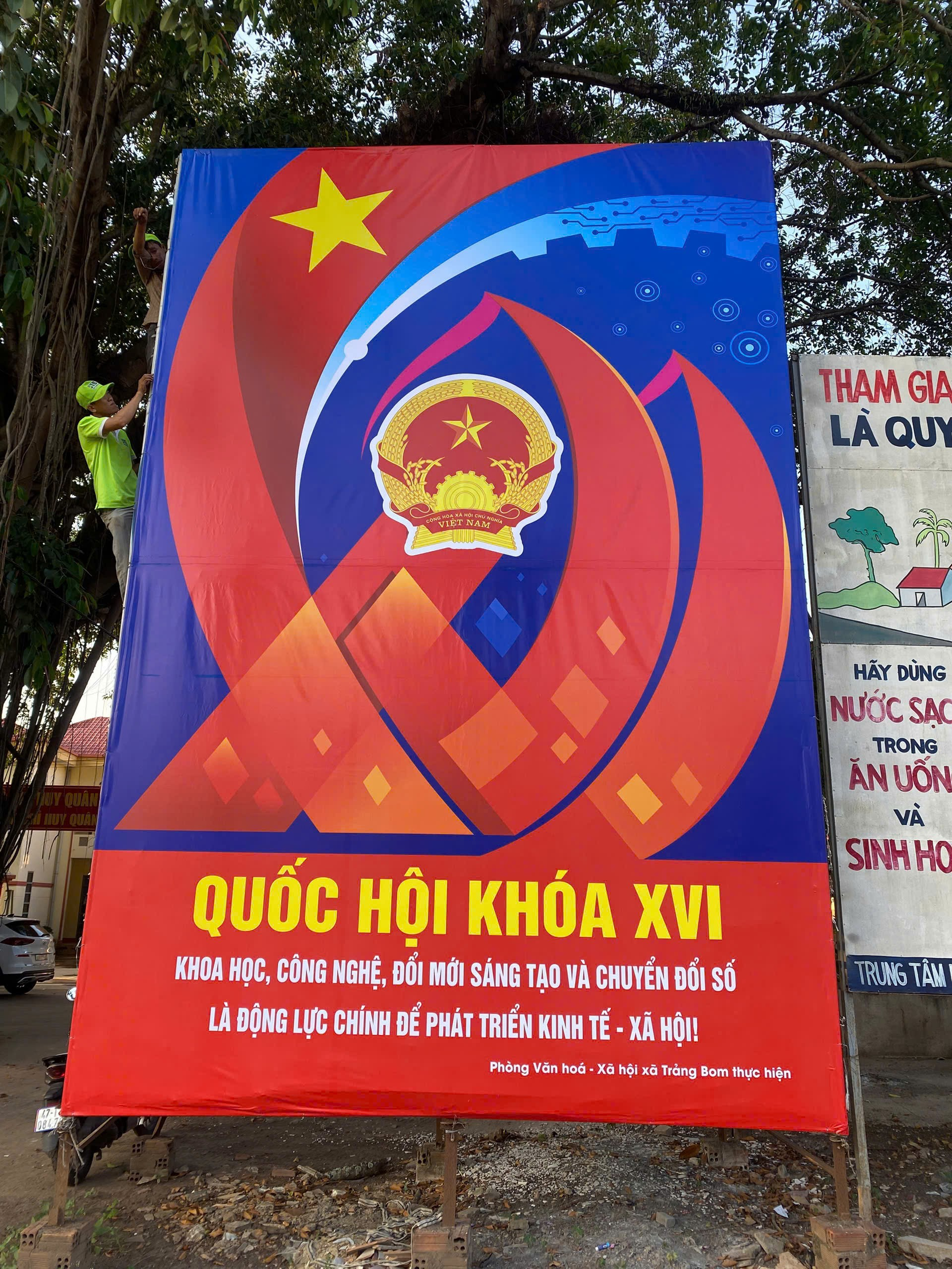 Pano tuyên truyền bầu cử đại biểu Quốc hội khóa XVI và đại biểu HĐND các cấp nhiệm kỳ 2026-2031 trên địa bàn xã Trảng Bom