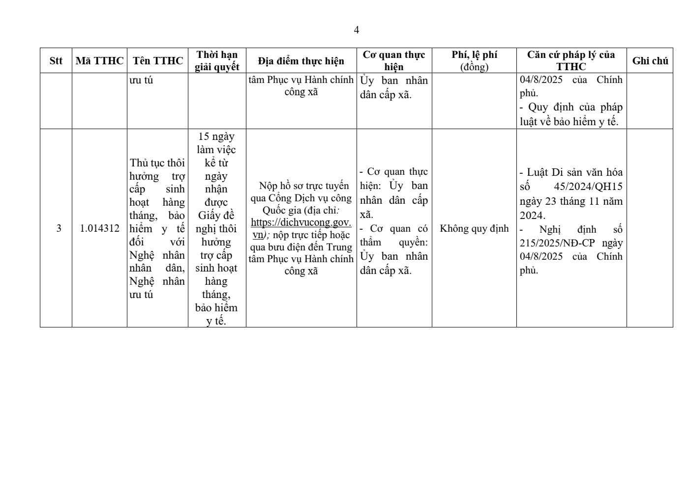 Danh mục thủ tục hành chính cấp xã ban hành mới: 03 thủ tục.