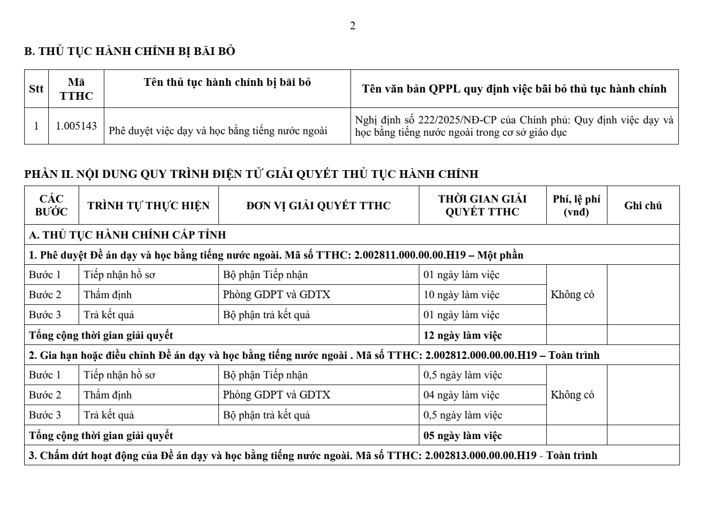Theo đó, danh mục các thủ tục hành chính và quy trình điện tử giải quyết thủ tục hành chính được ban hành mới và bị bãi bỏ lĩnh vực giáo dục và đào tạo thuộc hệ thống giáo dục quốc dân thuộc phạm vi chức năng quản lý nhà nước của Sở Giáo dục và Đào tạo tỉnh Đồng Nai, cụ thể: