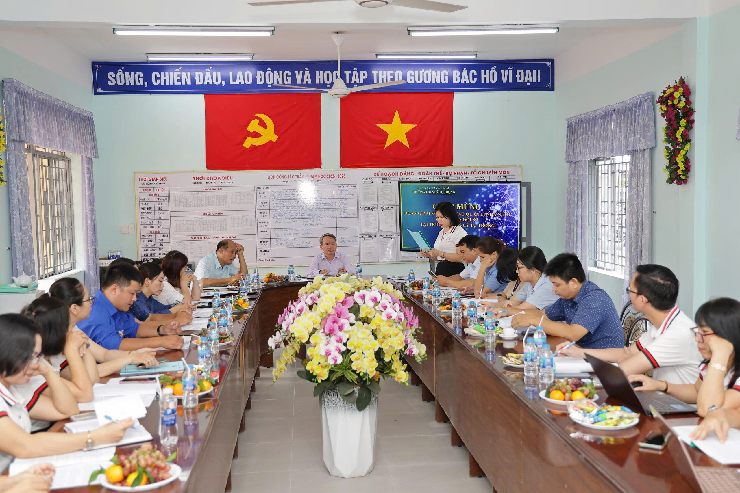 Theo đó, đoàn đã đến khảo sát thực tế tại ấp Độc Lập, ấp 7, trường THCS Lý Tự Trọng, Phòng Văn hoá – Xã hội, Trung tâm Văn hoá – Thể thao, Trung tâm phục vụ hành chính công. Tại các điểm đến, đoàn công tác đã lắng nghe lãnh đạo các đơn vị, cơ quan và trường học chia sẻ về kết quả đã đạt được trong công tác chuyển đổi số.