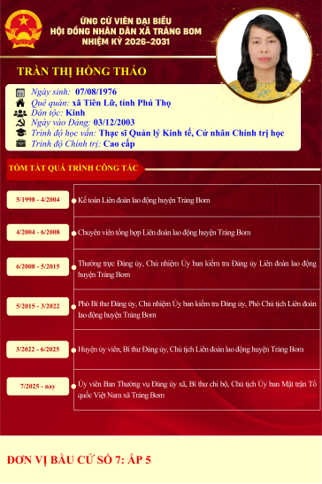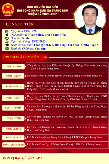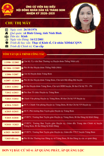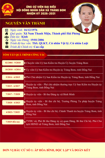 Infographic tiểu sử tóm tắt các ứng cử viên HĐND xã Trảng Bom nhiệm kỳ 2026 – 2031