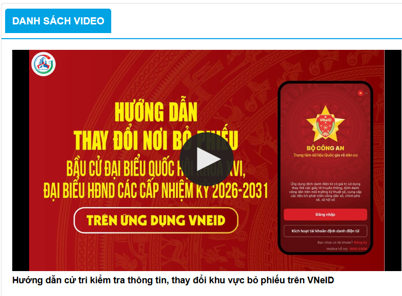 Video, hình ảnh hướng dẫn cử tri kiểm tra thông tin, thay đổi khu vực bỏ phiếu trên VneID được đăng tải