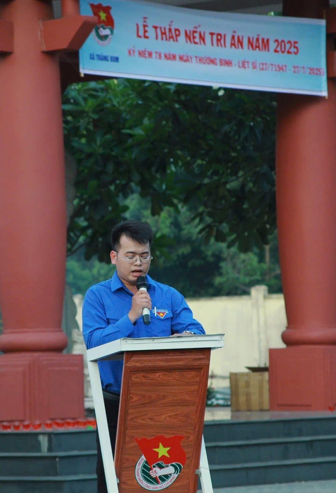 Phát biểu tại chương trình, đồng chí Lê Hoàng Phụng – Phó Chủ tịch MTTQ Việt Nam xã- Bí thư Đoàn xã Trảng Bom nhấn mạnh: “Thắp nến tri ân không chỉ là nghi thức tưởng niệm trang trọng, mà còn là dịp để thế hệ trẻ nhìn lại lịch sử hào hùng, tiếp thêm trách nhiệm xây dựng và bảo vệ quê hương, đất nước. Trong ngày hôm nay, mỗi đại biểu, mỗi đoàn viên, thanh thiếu nhi hãy cùng nhau thắp nén tâm nhang, dâng những ngọn nến tri ân những công lao của các anh hùng liệt sĩ bằng tất cả tấm lòng yêu mến, trân trọng. Xin nguyện tiếp bước các thế hệ cha anh xung kích, tình nguyện xây dựng và bảo vệ Tổ quốc, viết tiếp bản hùng ca về dân tộc Việt Nam anh hùng, bất khuất trong đấu tranh và năng động, sáng tạo, bản lĩnh trong phát triển quê hương giàu đẹp; cùng chung tay xây dựng đất nước ta đàng hoàng hơn, to đẹp hơn như lời Chủ tịch Hồ Chí Minh kính yêu hằng mong ước. Đời đời nhớ ơn các anh hùng liệt sĩ đã anh dũng hy sinh vì độc lập, tự do của dân tộc, vì hạnh phúc của Nhân dân!