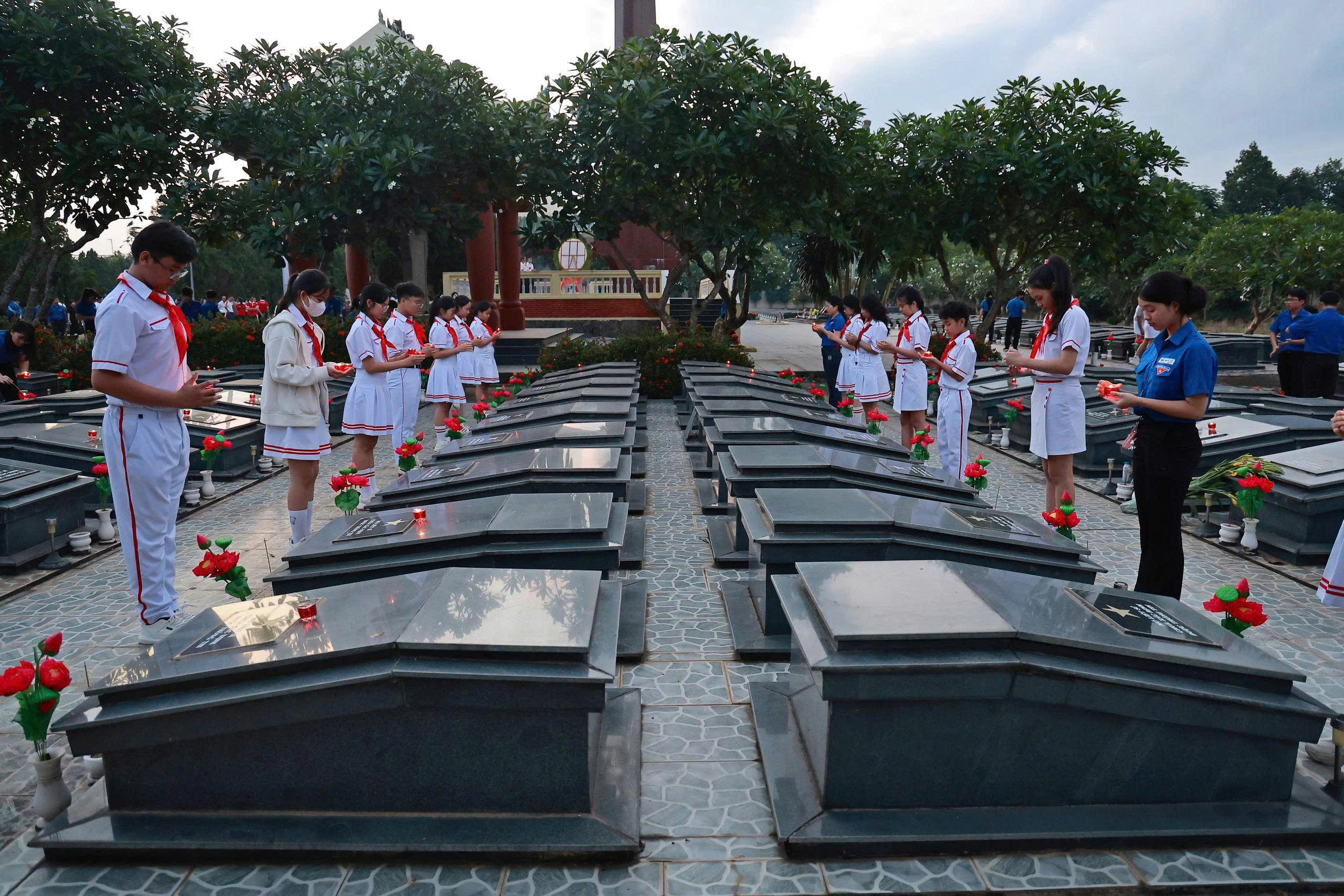 Tại buổi lễ, các đại biểu cùng đoàn viên đã kính cẩn dâng hương, dâng hoa và thắp hàng trăm ngọn nến trên từng phần mộ liệt sĩ. Những ngọn nến lung linh trong đêm như ánh sáng của lòng biết ơn, của truyền thống “Uống nước nhớ nguồn”, “Đền ơn đáp nghĩa” mà thế hệ hôm nay dành cho các anh hùng đã ngã xuống vì độc lập dân tộc.