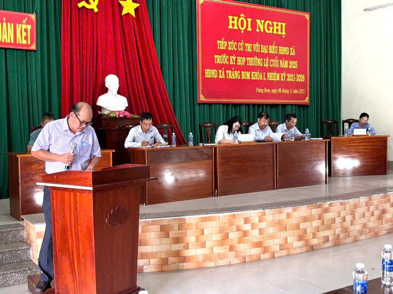 Tại buổi tiếp xúc, đại biểu HĐND xã đã thông tin về kết quả thực hiện nhiệm vụ kinh tế - xã hội và quốc phòng - an ninh của xã năm 2025; dự kiến nội dung, chương trình Kỳ họp thường lệ cuối năm 2025 của HĐND xã Trảng Bom, khóa I, nhiệm kỳ 2021-2026 sắp tới.