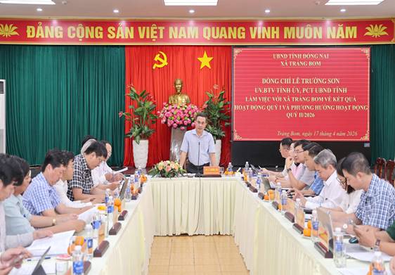 Chiều ngày 17/4, Đồng chí Lê Trường Sơn - UV BTV Tỉnh ủy, Phó Chủ tịch UBND tỉnh Đồng Nai cùng đại diện các sở, ngành của tỉnh đã có buổi làm việc với UBND xã Trảng Bom về kết quả hoạt động Quý I; phương hướng, nhiệm vụ Quý II/2026 về công tác chuẩn bị lên phường.