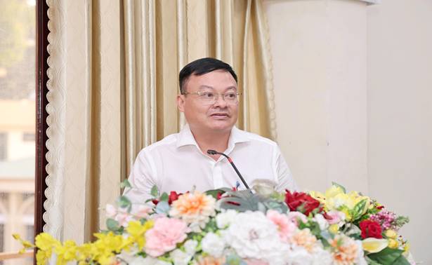 Đồng chí Lê Trường Sơn - Ủy viên Ban Thường vụ Tỉnh ủy, Phó Chủ tịch UBND tỉnh phát biểu tại buổi làm việc