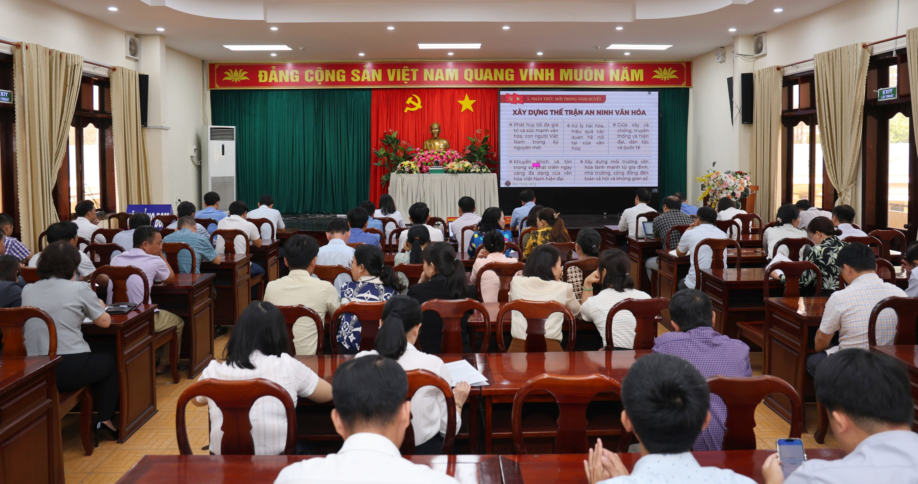 Trong thời gian buổi sáng ngày 25/2/2026, các đại biểu đã nghe quán triệt nội dung trọng tâm, cốt lõi của Nghị quyết số 79-NQ/TW, ngày 06/01/2026 của Bộ Chính trị về phát triển kinh tế Nhà nước; Nghị quyết số 80-NQ/TW, ngày 07/01/2026 của Bộ Chính trị về phát triển văn hóa Việt Nam; Chương trình hành động thực hiện Nghị quyết số 79-NQ/TW và Nghị quyết số 80-NQ/TW.