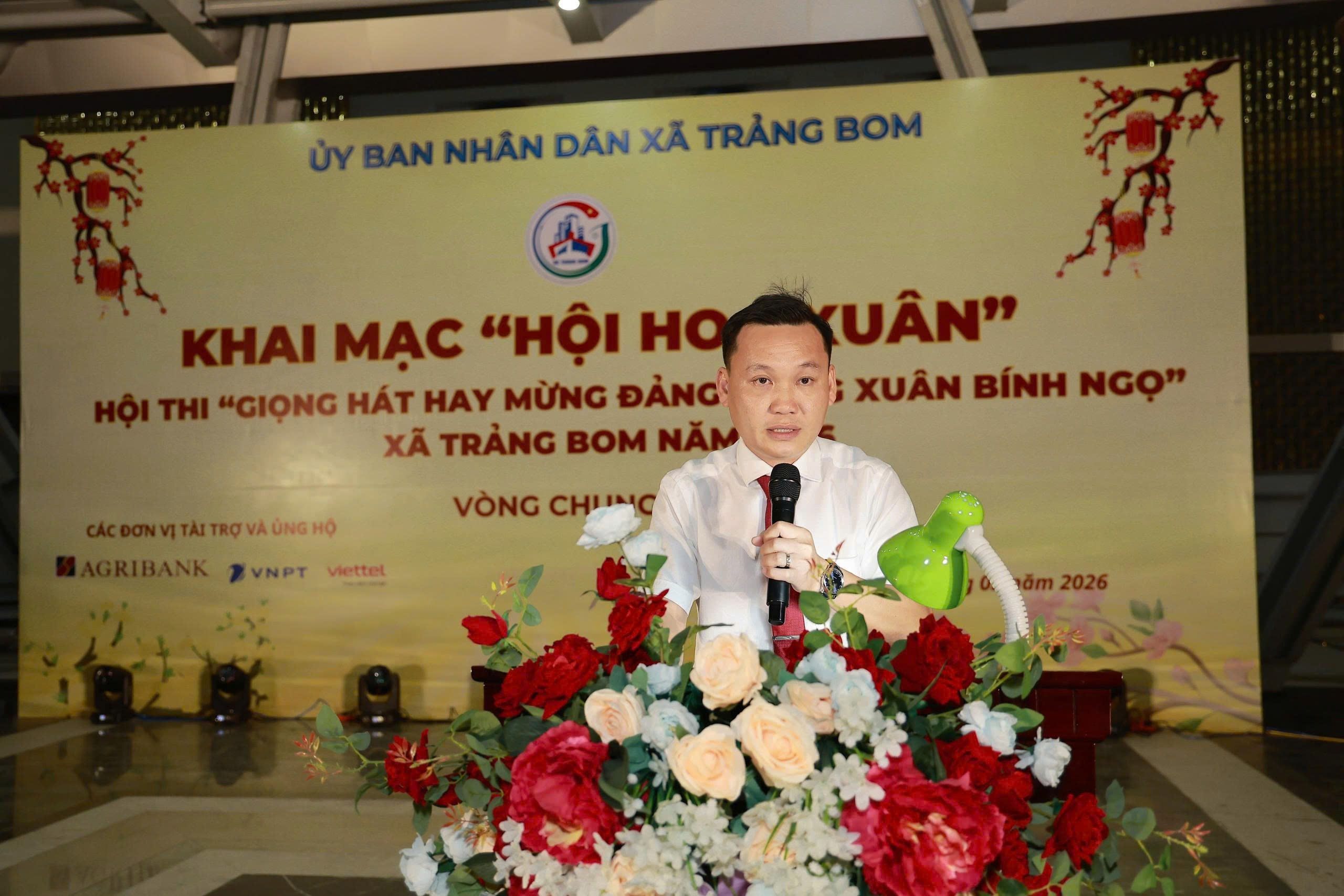 Phát biểu tại lễ khai mạc, đồng chí Nguyễn Văn Chiến – Uỷ viên Ban Thường vụ Đảng ủy - PCT. UBND xã – Trưởng Ban Tổ chức Kỷ niệm các ngày Lễ lớn Xã nhấn mạnh: Hội Hoa Xuân Bính Ngọ năm 2026 được tổ chức trong một bối cảnh đặc biệt - là mùa Xuân đầu tiên của xã Trảng Bom với tên gọi mới, sau quá trình sắp xếp, sáp nhập đơn vị hành chính theo chủ trương lớn của Đảng và Nhà nước; là một bước chuyển mang tính lịch sử, đánh dấu sự tái cấu trúc không gian phát triển, mở ra một giai đoạn mới trong tiến trình xây dựng chính quyền gần dân, vì dân và phục vụ Nhân dân. Mùa Xuân Bính Ngọ 2026 vì thế mang ý nghĩa của sự khởi đầu, nơi quá khứ được kế thừa, hiện tại được khẳng định và tương lai được mở ra bằng niềm tin và trách nhiệm. Trên nền tảng đó, Đảng bộ và Nhân dân xã Trảng Bom bước vào chặng đường mới với quyết tâm chính trị cao, nỗ lực thực hiện thắng lợi Nghị quyết Đại hội đại biểu Đảng bộ xã Trảng Bom lần thứ I, nhiệm kỳ 2025–2030, từng bước định hình những định hướng chiến lược nhằm phát huy tiềm năng, lợi thế, đưa địa phương phát triển bền vững và toàn diện.