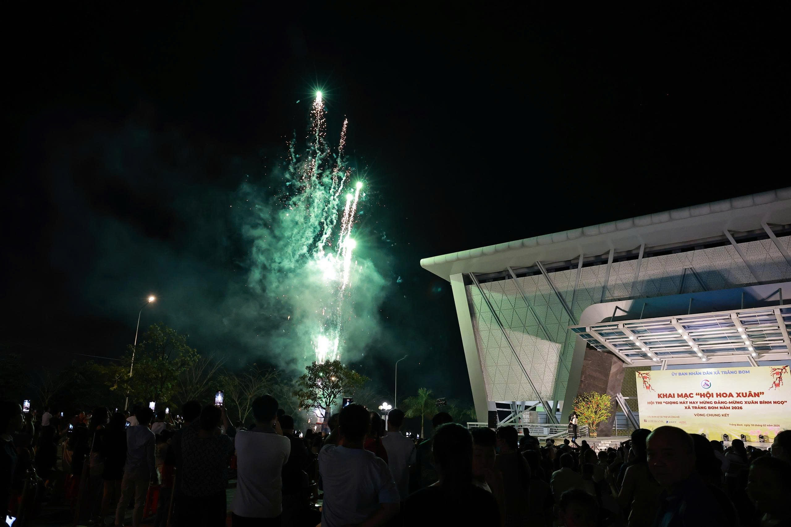 Sau lễ khai mạc, người dân và du khách tiếp tục hòa mình vào không khí lễ hội với phần bắn pháo hoa rực rỡ trên bầu trời, cùng các hoạt động vui chơi, giải trí tạo nên một đêm hội văn hóa sôi động, giàu bản sắc tại xã Trảng Bom.