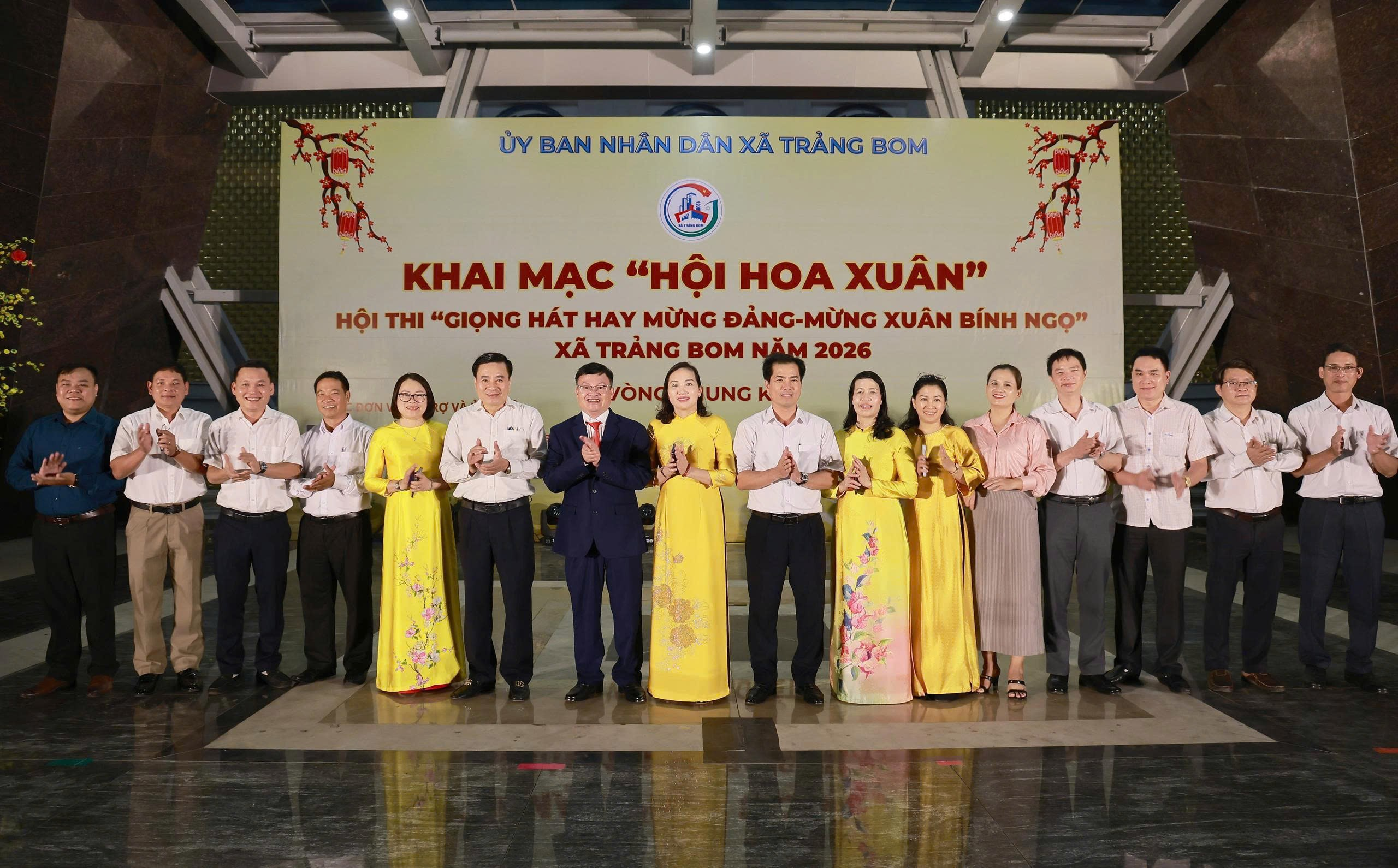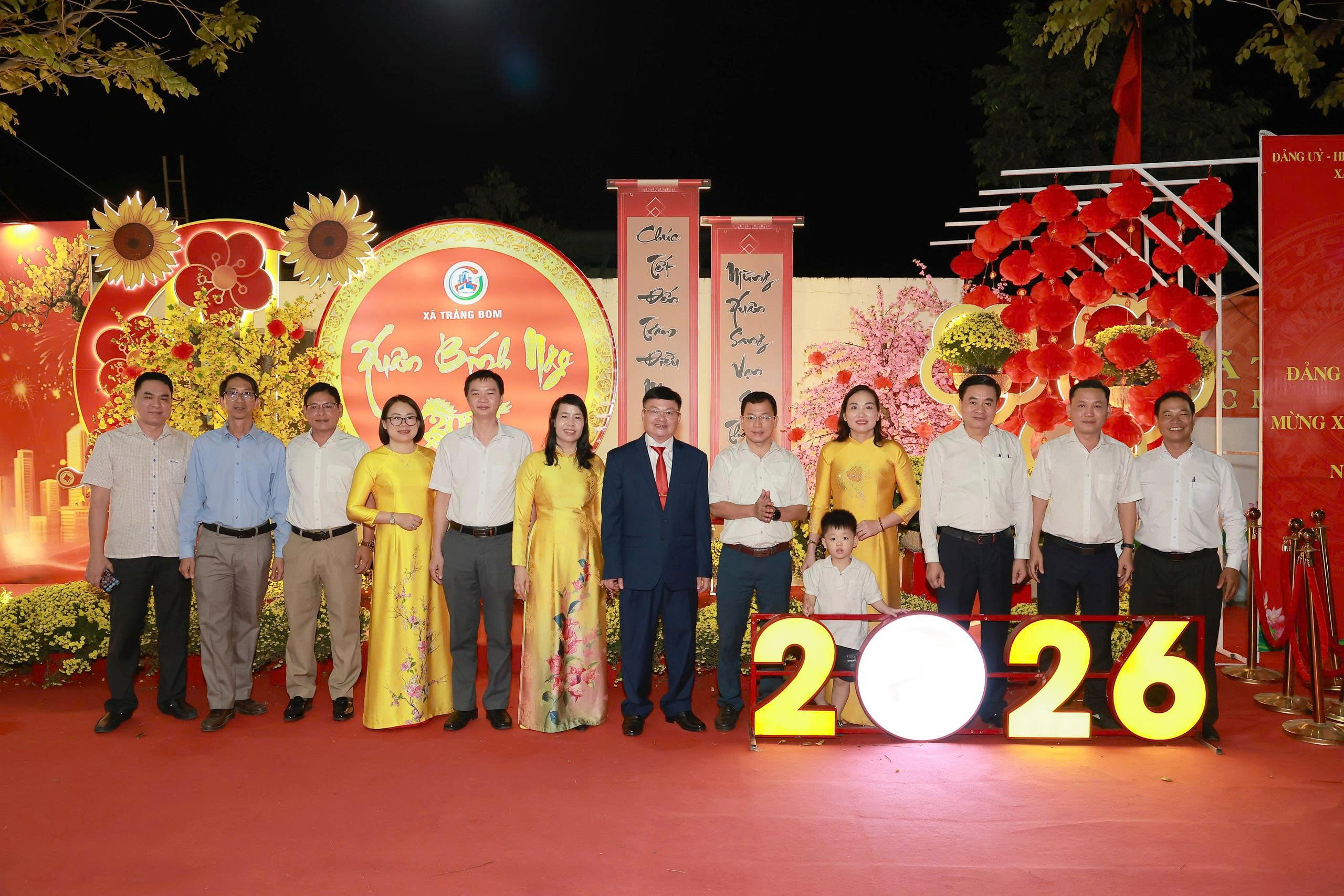 Đến tham dự lễ khai mạc có Đ/c Đặng Doãn Thành - Bí thư Đảng ủy - Chủ tịch HĐND xã; Đ/c Chu Thị Mây - Phó bí thư Thường trực Đảng ủy xã; Đ/c Lê Ngọc Tiên - Phó bí thư Đảng ủy - Chủ tịch UBND xã; Đ/c Trần Thị Hồng Thảo - Ủy viên BTV Đảng ủy – Chủ tịch UB.MTTQVN xã; các Đ/c Ủy viên Ban Thường vụ Đảng ủy; Các Đ/c lãnh đạo các Ban Đảng, Văn phòng Đảng ủy; các Đ/c Ủy viên Ban Chấp hành Đảng bộ xã; các Đ/c lãnh đạo HĐND, UBND, UB.MTTQVN xã; các Đ/c Lãnh đạo các cơ quan, đơn vị, ban ngành, đoàn thể xã; Ban Giám hiệu các Trường THCS, Tiểu học, Mầm non công lập trên địa bàn xã; các đơn vị hỗ trợ, ủng hộ tổ chức các hoạt động mừng Đảng, mừng Xuân năm 2026; cán bộ, công chức, viên chức các cơ quan, đơn vị thuộc xã; các Đ/c Bí thư, Trưởng ấp, Trưởng Ban Công tác Mặt trận các ấp và bà con nhân dân xã Trảng Bom cùng về tham dự.