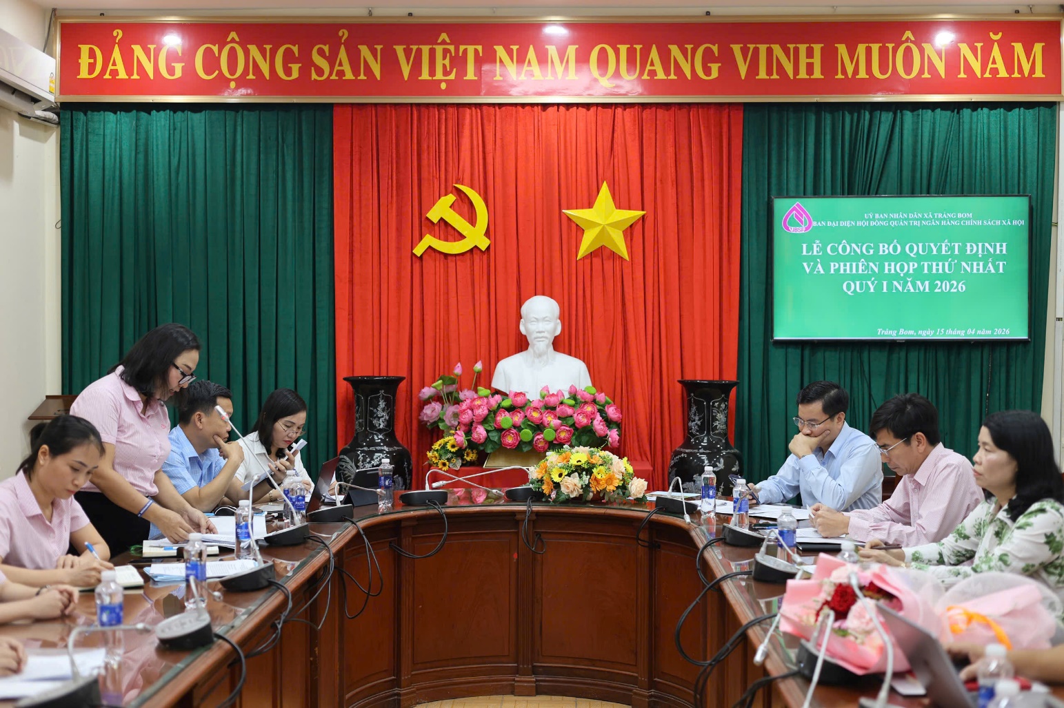 Sáng ngày 15/4, UBND xã Trảng Bom tổ chức hội nghị công bố Quyết định thành lập Ban đại diện Hội đồng quản trị Ngân hàng Chính sách xã hội (NHCSXH) xã, đồng thời tổng kết hoạt động quý I và triển khai nhiệm vụ quý II/2026.