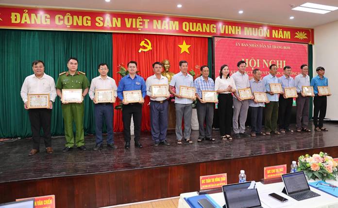 Phát biểu kết luận hội nghị, đồng chí Lê Ngọc Tiên - Phó Bí thư Đảng ủy, Chủ tịch UBND xã, Chủ tịch Hội đồng Nghĩa vụ quân sự xã Trảng Bom yêu cầu Chỉ huy trưởng Ban Chỉ huy quân sự xã căn cứ Luật Nghĩa vụ quân sự và văn bản hướng dẫn các bước tuyển chọn, gọi công dân nhập ngũ và thực hiện nghĩa vụ tham gia Công an nhân dân năm 2027 của Bộ Chỉ huy quân sự tỉnh, Công an tỉnh, nắm chắc số thanh niên của địa phương mình; Rà soát thanh niên thuộc diện phải thực hiện nghĩa vụ quân sự, công an, chịu trách nhiệm về việc xác minh, thẩm tra lý lịch. Đặc biệt phối hợp quản lý nắm chắc số thanh niên vắng mặt tại địa phương, những trường hợp đã đi khỏi địa phương từ lâu, không liên lạc được, rà soát thông báo xóa khẩu theo luật cư trú mới. Trạm Y tế xã làm tốt ngay từ khâu đăng ký tuổi 17, sơ khám sức khỏe, giúp cho Hội đồng Nghĩa vụ quân sự xã tuyển chọn thanh niên sức khỏe tốt khám sức khỏe tại khu vực đạt kết quả cao nhất; kiên quyết không để xảy ra tiêu cực trong công tác khám sức khoẻ nghĩa vụ quân sự, công an. Các cơ quan, ban ngành làm tốt công tác phối hợp trong tuyên truyền Luật Nghĩa vụ quân sự; công tác quản lý nguồn và thủ tục quy trình tuyển chọn công dân nhập ngũ. Hội đồng Nghĩa vụ quân sự xã thực hiện tốt vai trò chỉ đạo, hướng dẫn cho các ấp khi thực hiện quy trình công tác tuyển quân; cập nhật những văn bản, hướng dẫn mới nhất để triển khai thực hiện cho các ấp. Dịp này, UBND xã Trảng Bom đã tặng Giấy khen cho 61 tập thể và cá nhân có thành tích xuất sắc trong công tác tuyển chọn, gọi công dân nhập ngũ và thực hiện nghĩa vụ tham gia Công an nhân dân năm 2026.