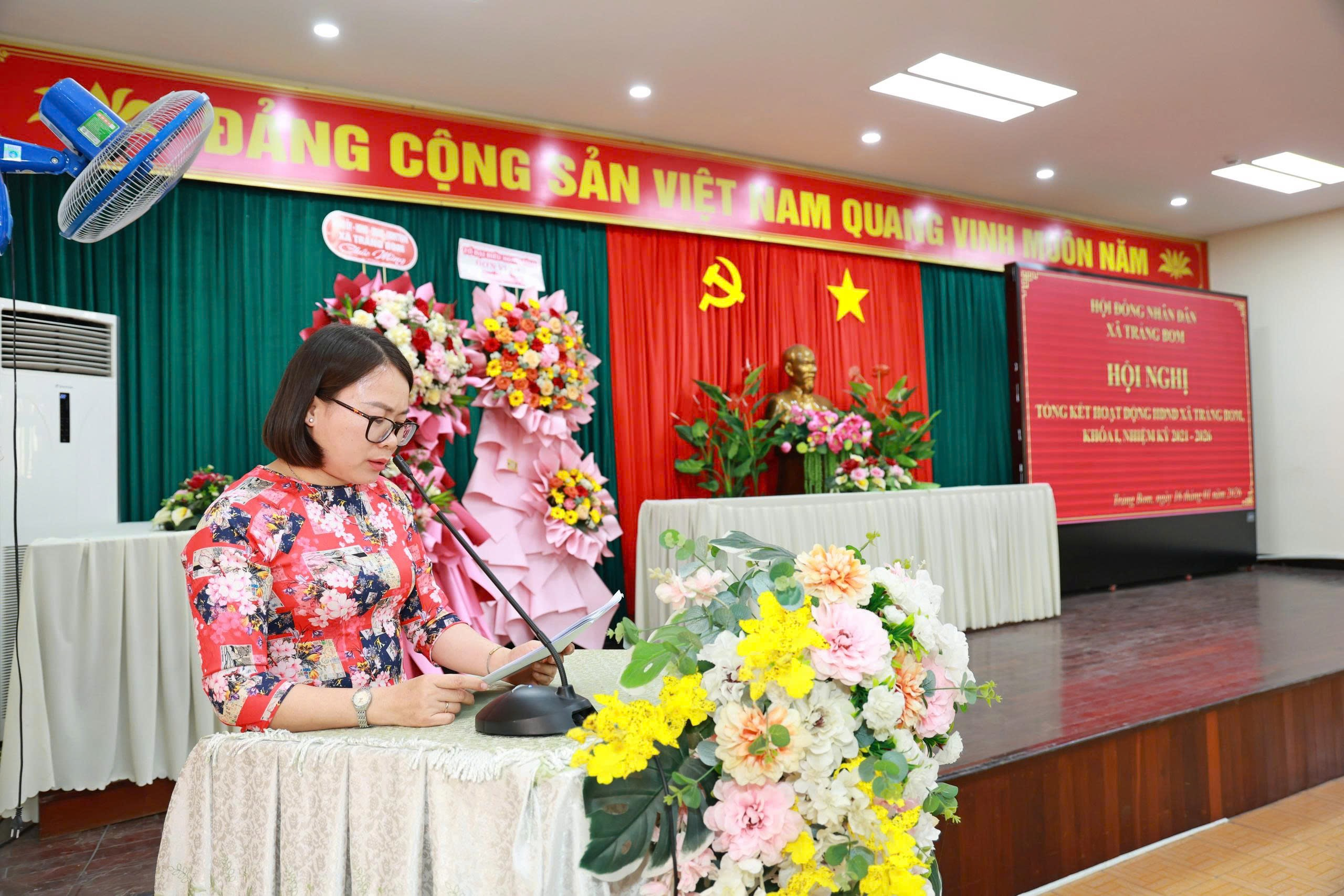 Cũng tại hội nghị, các đại biểu đã nghe đại diện UBND xã Báo cáo tổng kết nhiệm kỳ hoạt động của UBND xã; UBMTTQVN xã thông báo về kết quả tham gia xây dựng chính quyền trong nhiệm kỳ. Ngoài ra, các đại biểu còn được nghe các tham luận của Ban Văn hóa - Xã hội - HĐND xã về “Vai trò của Ban Hội đồng nhân dân trong nâng cao chất lượng tổ chức các kỳ họp Hội đồng nhân dân xã Trảng Bom trong nhiệm kỳ 2021-2026” và Tổ đại biểu số 3 tham luận về “Một số giải pháp nâng cao chất lượng hoạt động của Tổ đại biểu HĐND xã sau sắp xếp chính quyền 2 cấp”.