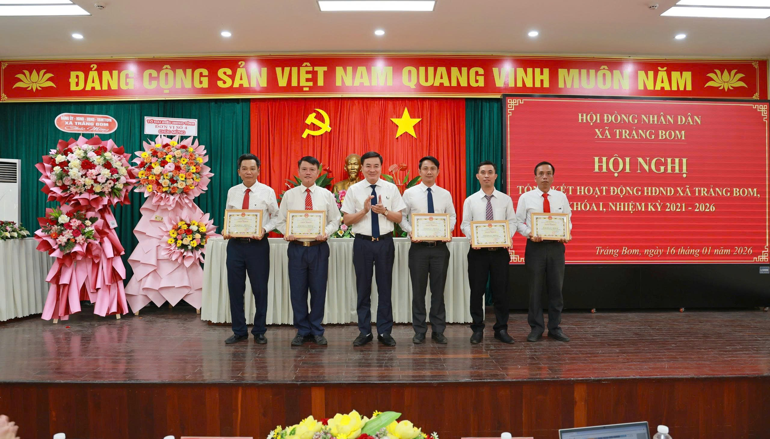 Dịp này, UBND xã Trảng Bom đã Khen thưởng cho 05 tập thể và 13 cá nhân có thành tích xuất sắc trong hoạt động của HĐND xã khóa I, nhiệm kỳ 2021 – 2026.