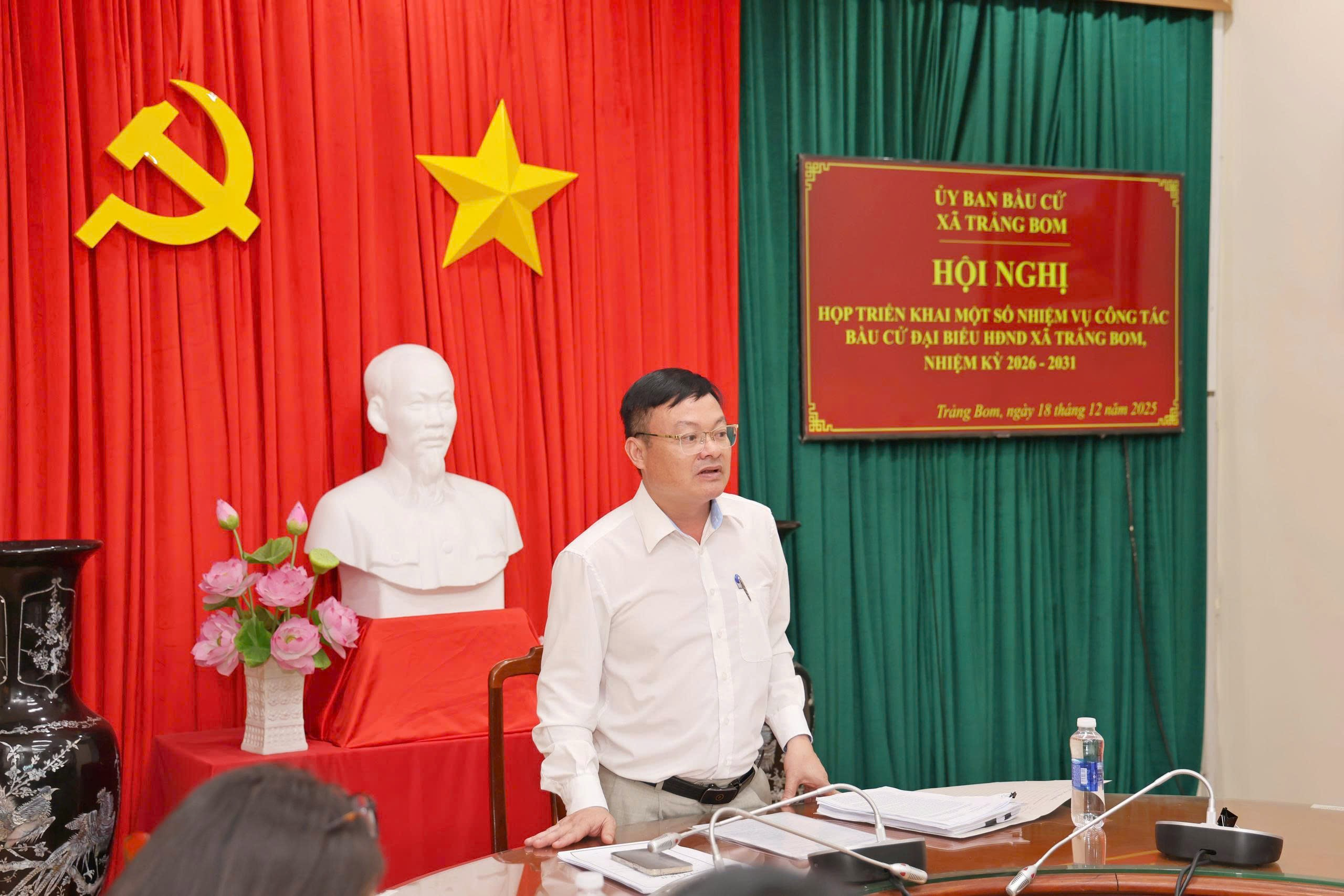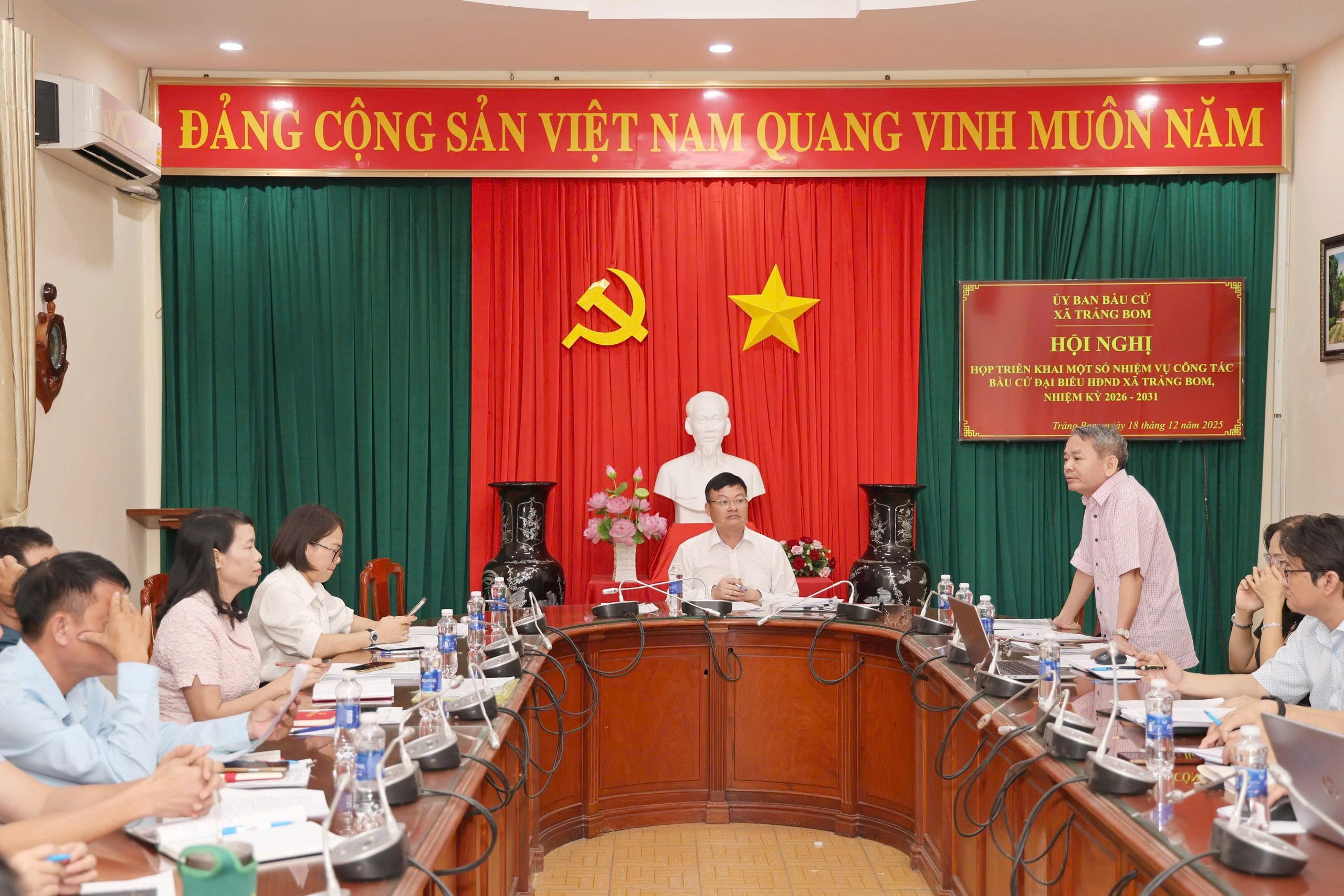 Theo đó, đến nay tiến đội triển khai thực hiện công tác bầu cử của Uỷ ban bầu cử xã Trảng Bom thực hiện kịp thời theo lộ trình và theo chỉ đạo của Uỷ ban bầu cử tỉnh. Cụ thể, xã đã kiện toàn Ủy ban bầu cử (UBBC), thành lập các tiểu ban phục vụ và ban hành quy chế làm việc chính thức. Các bước về nhân sự cũng được triển khai quyết liệt: tổ chức thành công Hội nghị hiệp thương lần thứ nhất; thông báo dự kiến cơ cấu, thành phần và phân bổ số lượng người ứng cử. Uỷ ban bầu cử xã cũng đã ra thông báo mẫu dấu, địa điểm làm việc và thông tin liên lạc của Uỷ ban bầu cử xã; thời gian, địa điểm tiếp nhận hồ sơ ứng cử đại biểu Hội đồng nhân dân xã Trảng Bom nhiệm kỳ 2026-2031.