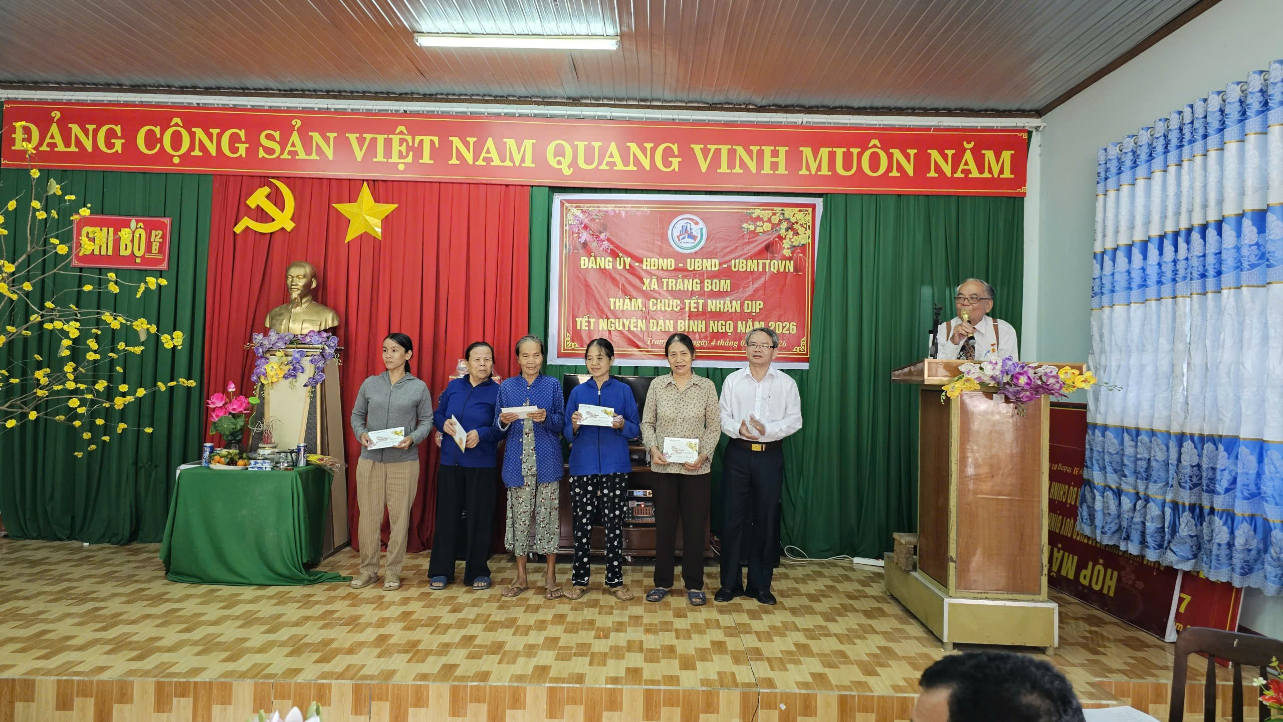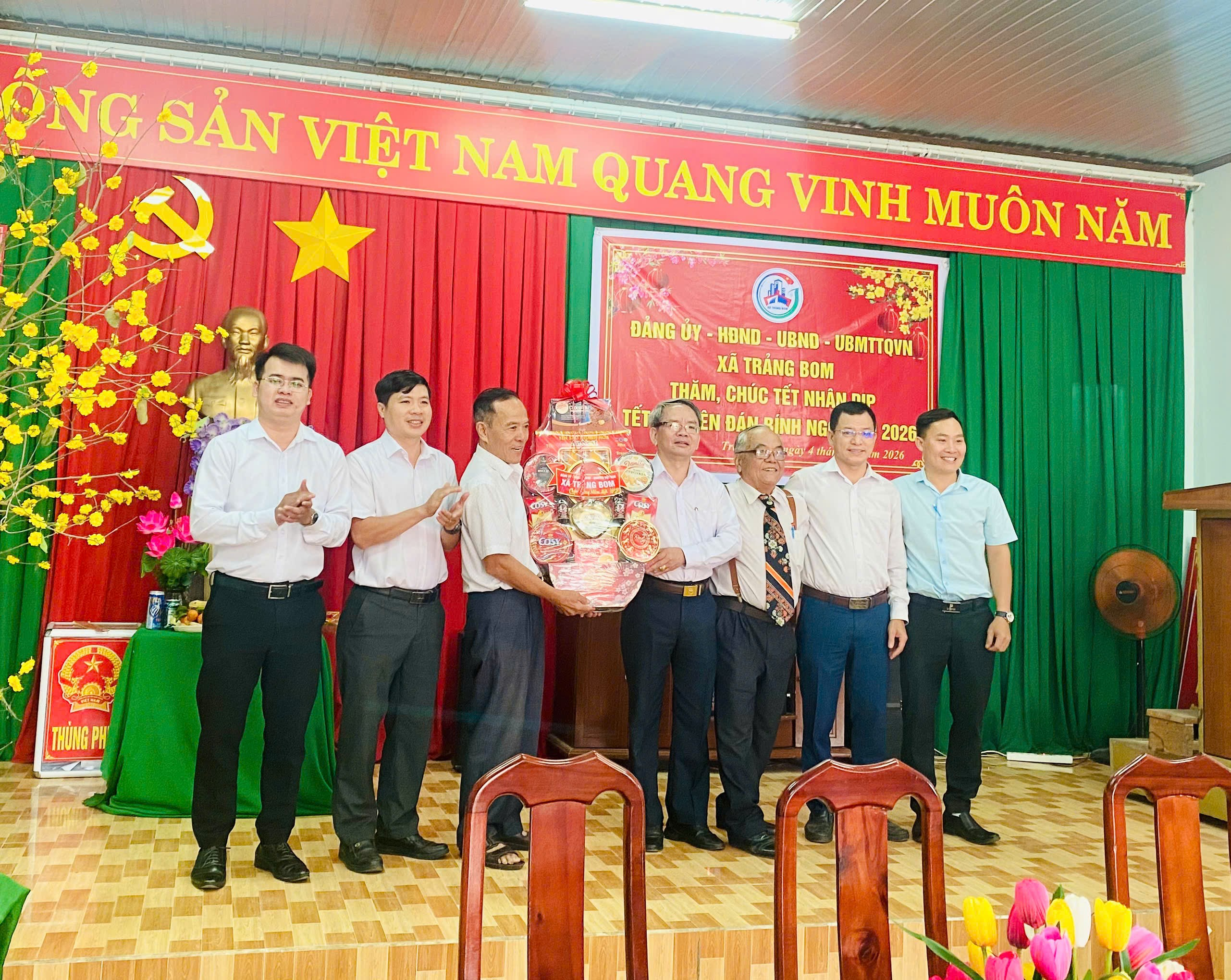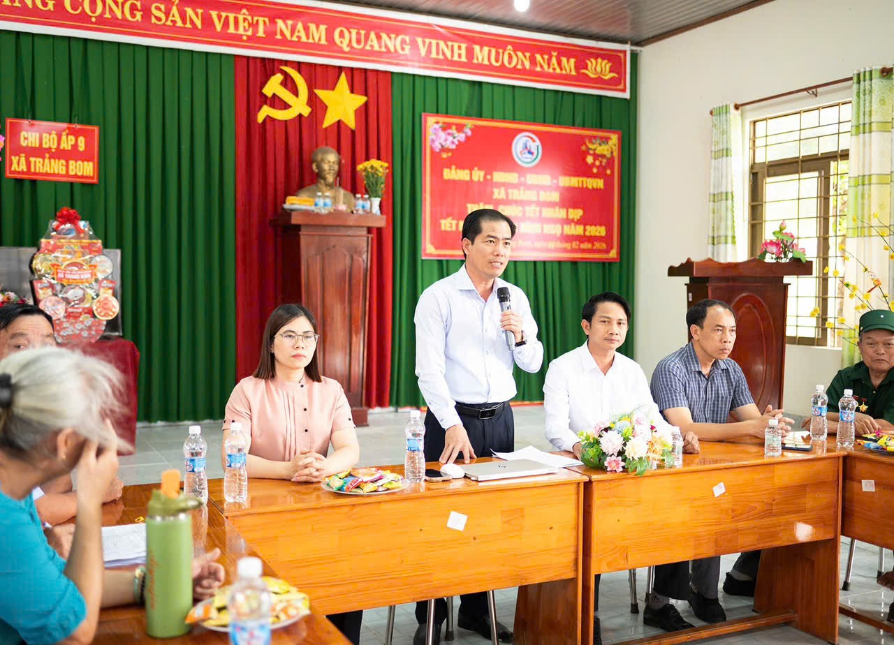 Hòa chung không khí phấn khởi chào mừng kỷ niệm 96 năm ngày thành lập Đảng Cộng sản Việt Nam (03/02/1930 - 03/02/2026) và đón chào Xuân mới Bính Ngọ, trong 2 ngày 3 và 4-2-2026, Đảng ủy – HĐND – UBND – UBMTTQ xã Trảng Bom đã tổ chức 08 đoàn trực tiếp đến thăm và động viên nhiều nhóm đối tượng, bao gồm: Mẹ Việt Nam Anh hùng, các đảng viên nhận Huy hiệu Đảng, các gia đình thương binh liệt sĩ, gia đình chính sách tiêu biểu, hộ nghèo, hộ cận nghèo và các đối tượng bảo trợ xã hội tại 22 ấp trên địa bàn xã. Đây là hoạt động thường niên mang ý nghĩa nhân văn sâu sắc, thể hiện đạo lý "Uống nước nhớ nguồn" và tinh thần "Tương thân tương ái" tốt đẹp của dân tộc.
