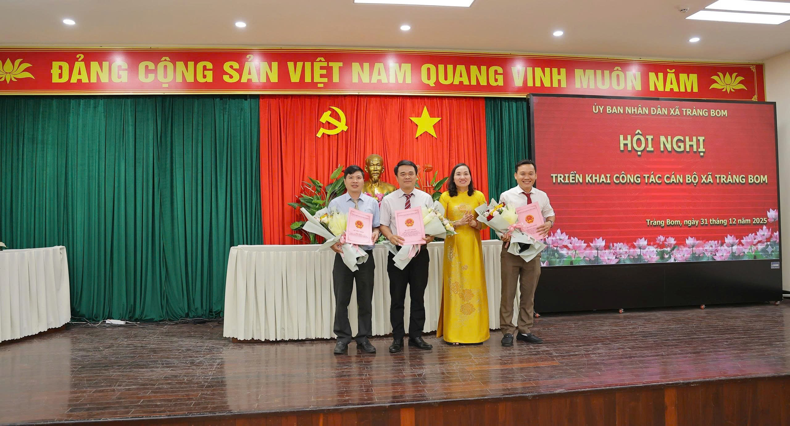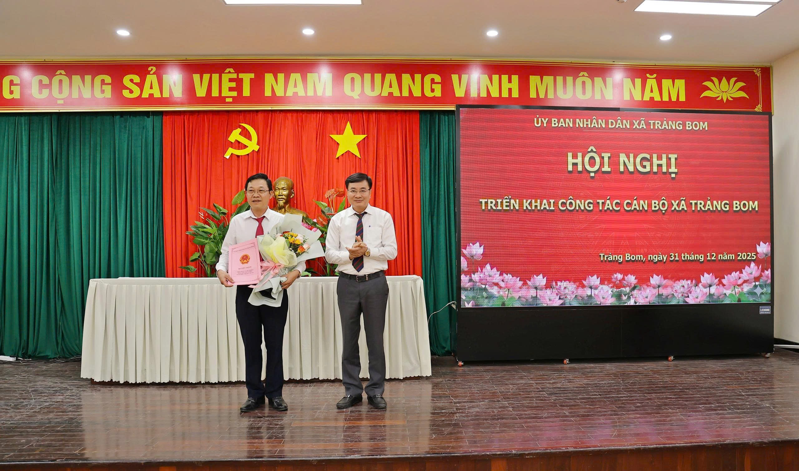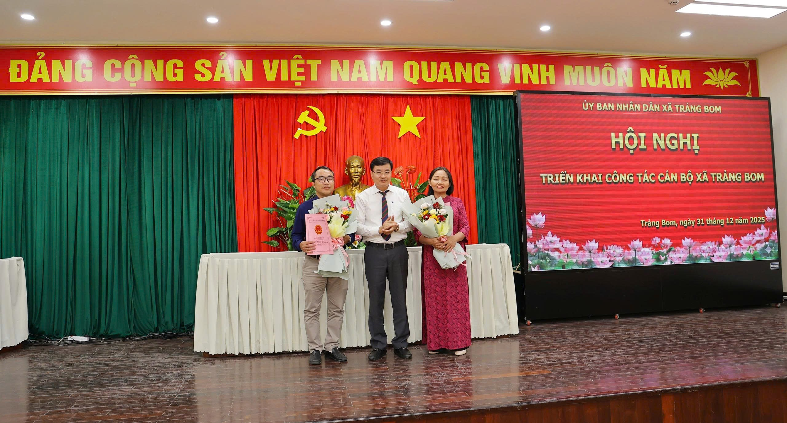 Theo đó UBND xã Trảng Bom quyết định thành lập Trạm y tế xã Trảng Bom trên cơ sở tiếp nhận nguyên trạng Trạm y tế xã Trảng Bom từ Trung tâm y tế khu vực Trảng Bom về trực UBND xã Trảng Bom quản lý kể từ ngày 01/01/2026; Quyết định tiếp nhận và bổ nhiệm ông Lê Văn Cường giữ chức vụ Giám đốcTrạm y tế xã; Đồng thời tiếp nhận, bố trí 36 viên chức đến công tác tại Trạm y tế xã thuộc Uỷ ban nhân dân xã Trảng Bom kể từ ngày 01/01/2026.