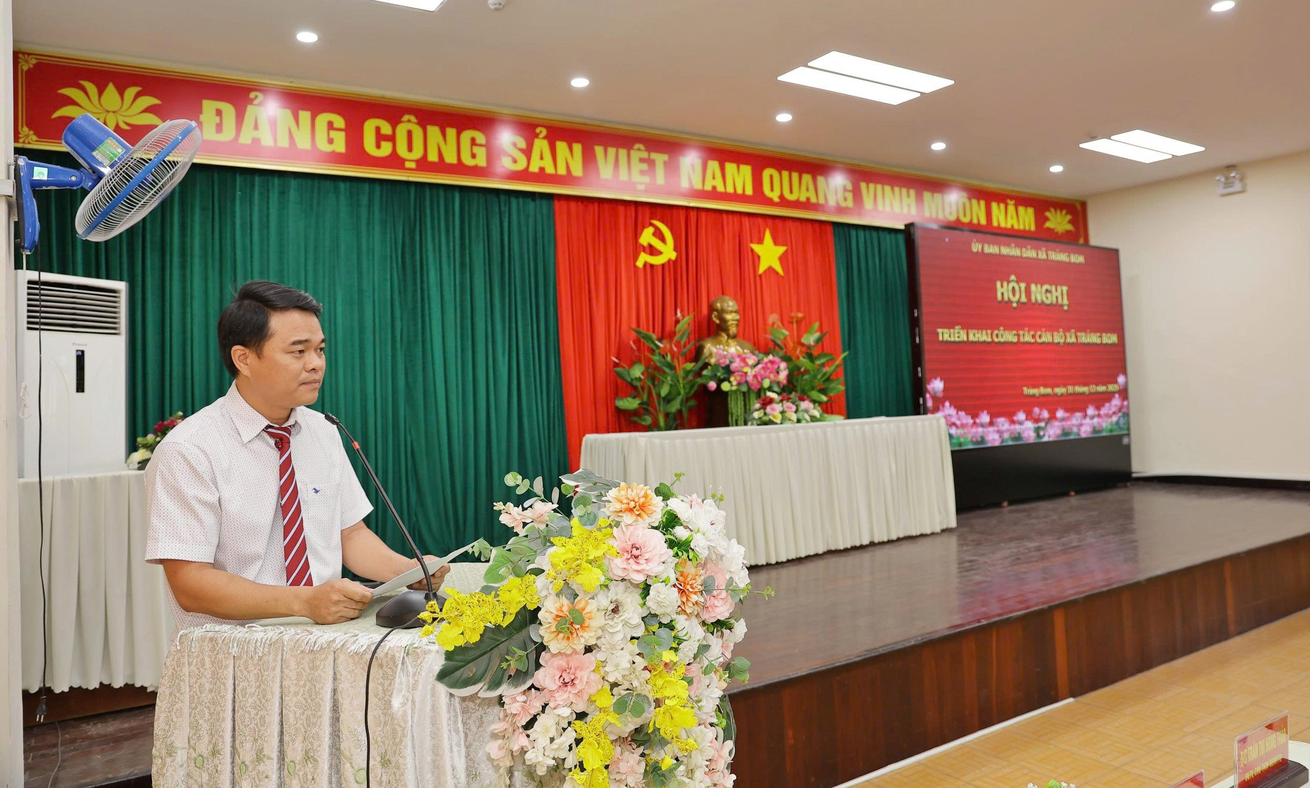 Tại hội nghị, đồng chí Trần Thanh Nghị - Trưởng phòng Văn hoá – Xã hội đã thông qua các Quyết định của UBND xã Trảng Bom về công tác cán bộ đối với các Cơ quan chuyên môn, đơn vị, trường học trên địa bàn xã.