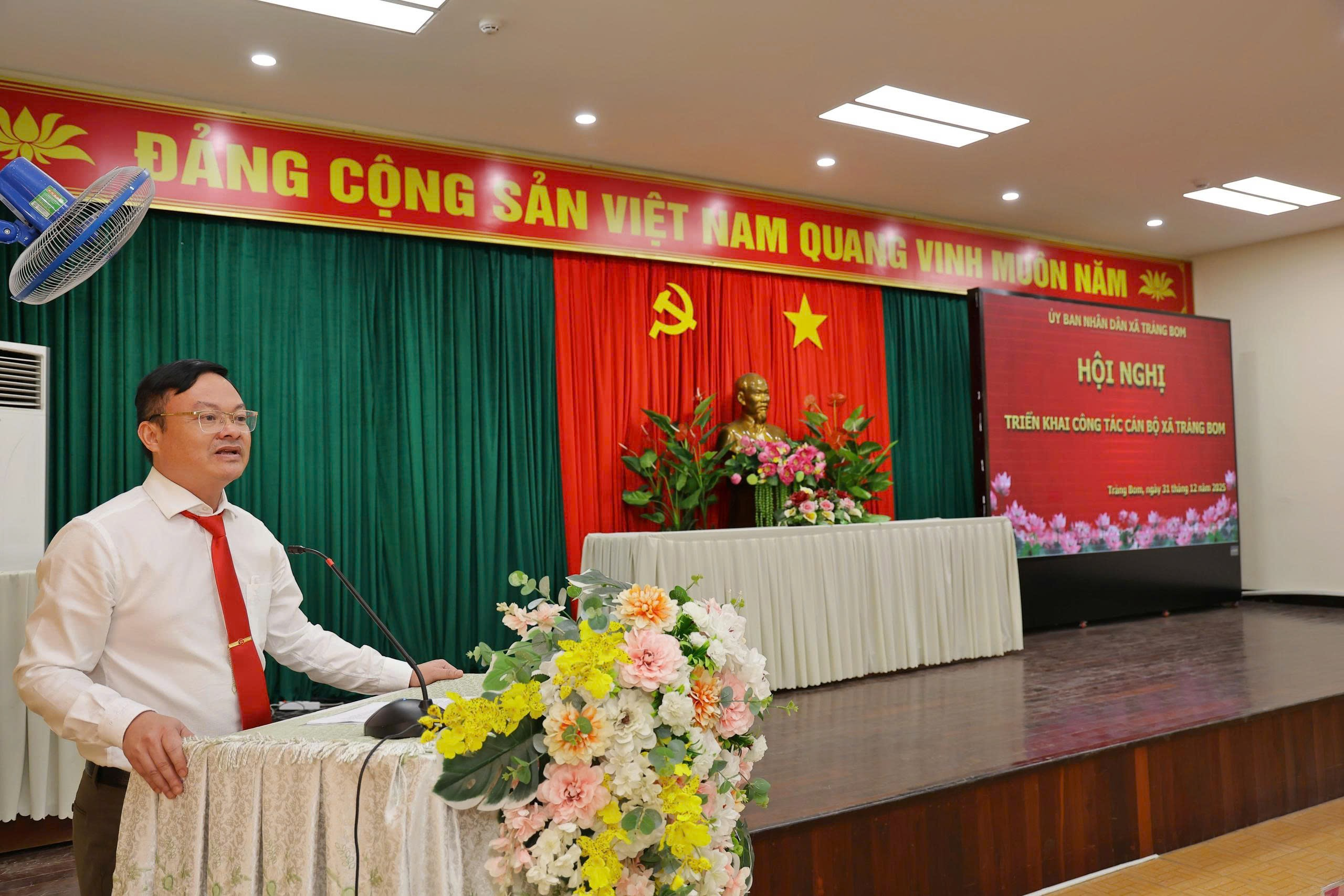 Phát biểu tại hội nghị, đồng chí Đặng Doãn Thành - Bí thư Đảng ủy, chủ tịch HĐND xã Trảng Bom gửi lời chúc mừng tới các đơn vị và các cá nhân được nhận quyết định đợt này. Đồng thời đề nghị các đồng chí vừa được bổ nhiệm, phân công công tác và các tập thể, đơn vị nhanh chóng ổn định tổ chức bộ máy, nắm vững chức năng, nhiệm vụ, quyền hạn của đơn vị, chủ động xây dựng và ban hành quy chế làm việc, phân công nhiệm vụ cụ thể cho từng vị trí việc làm, đảm bảo hoạt động của đơn vị được thông suốt, hiệu quả, đúng quy định. Phát huy vai trò, trách nhiệm của người đứng đầu đề cao tinh thần gương mẫu kỷ luật, kỷ cương hành chính, tăng cường đoàn kết nội bộ, phát huy dân chủ, xây dựng tập thể cơ quan, đơn vị vững mạnh, hoàn thành tốt nhiệm vụ được giao. Đồng thời chú trọng nâng cao chất lượng tham mưu, hiệu quả thực thi công vụ, đẩy mạnh cải cách hành chính, ứng dụng công nghệ thông tin và chuyển đổi số trong quản lý điều hành, lấy sự hài lòng của người dân, tổ chức làm thước đo đánh giá chất lượng công việc. Tăng cường phối hợp chặt chẽ với các cơ quan, đơn vị có liên quan, chủ động báo cáo, đề xuất với ủy ban nhân dân xã những khó khăn, vướng mắc trong quá trình thực hiện nhiệm vụ, bảo đảm mọi công việc được triển khai kịp thời, đúng quy định và hiệu quả.