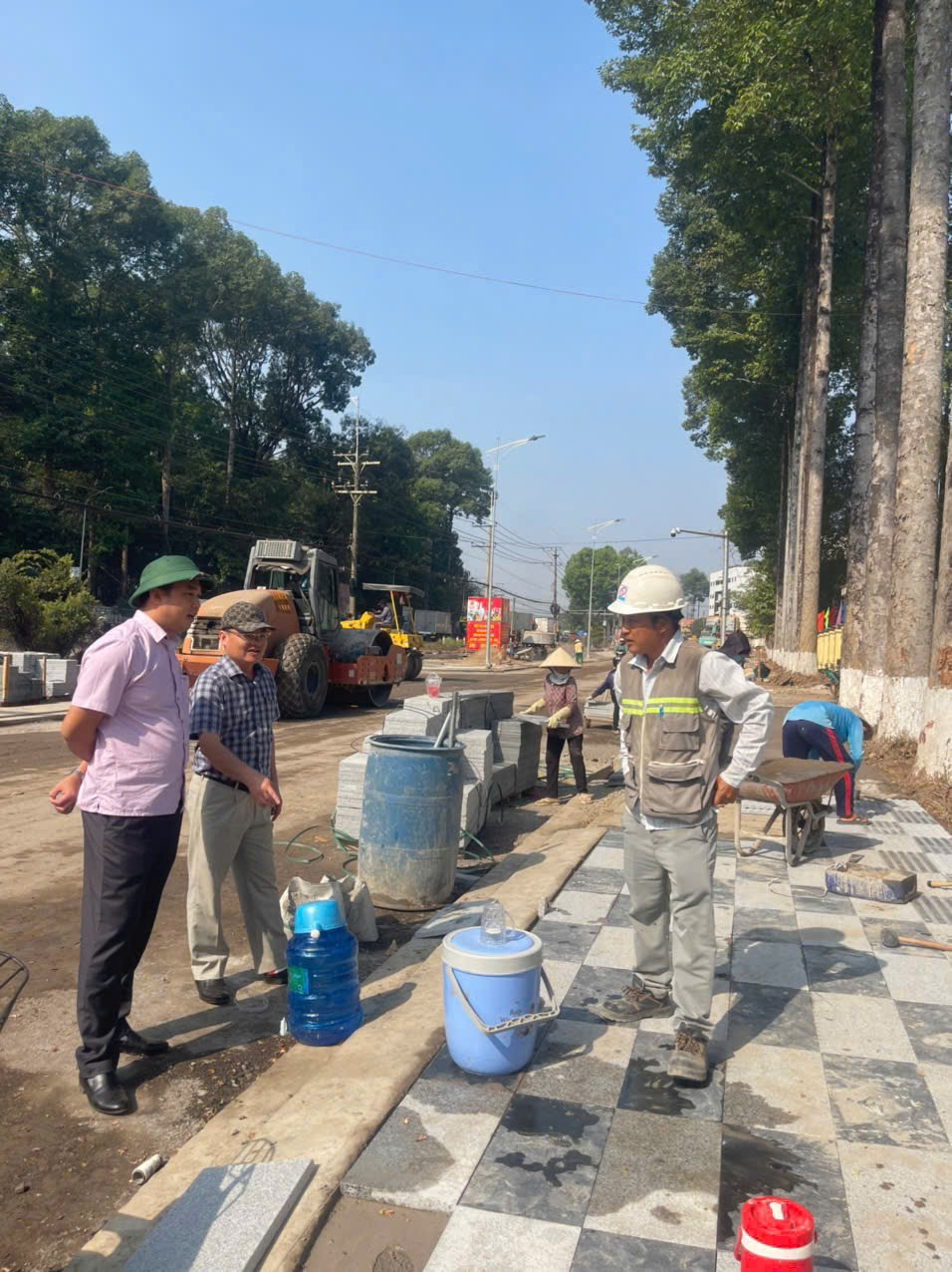 Đoàn đã trực tiếp đến hiện trường thi công tại các tuyến đường gồm: đường 29/4, đường Nguyễn Hữu Cảnh, đường Nam Kỳ Khởi Nghĩa, nút giao thông đường Nguyễn Huệ, đường D8 Khu dân cư đấu nối với QL1A, Đường D1 (trục dọc khu trung tâm dịch vụ KCN Bàu Xéo) Đây là những trục đường huyết mạch, đóng vai trò kết nối giao thương và nâng cao năng lực hạ tầng giao thông của xã.