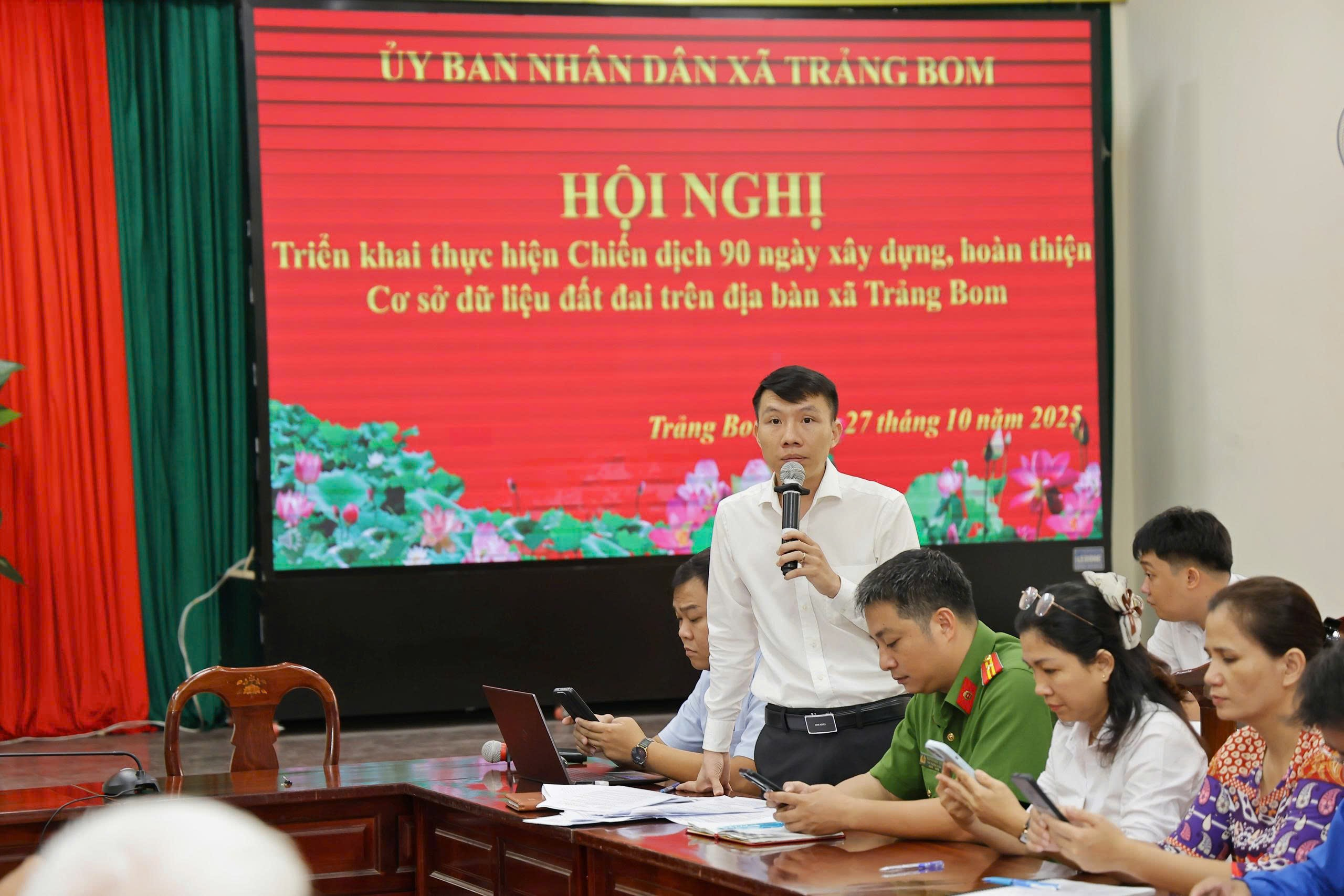 Theo đó, UBND xã Trảng Bom thành lập 10 tổ công tác thu thập dữ liệu đất đai trên địa bàn 22 ấp. Nội dung triển khai thu thập các loại Giấy chứng nhận quyền sử dụng đất, quyền sở hữu nhà ở và tài sản khác gắn liền với đất; Thẻ Căn cước hoặc Căn cước công dân của chủ sử dụng đất chưa được xây dựng trong cơ sở dữ liệu đất đai, tổng hợp, báo cáo sở Nông nghiệp và Môi trường thực hiện tạo lập cơ sở dữ liệu đối với thửa đất ở, nhà ở đã được cấp giấy chứng nhận. Thời gian thực hiện đến ngày 30/11/2025.