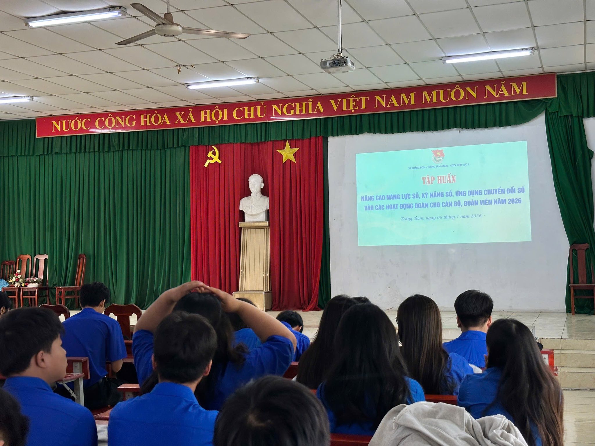 Chương trình tập huấn nâng cao năng lực số, kỹ năng số và ứng dụng chuyển đổi số trong hoạt động Đoàn năm 2026. Tại đây, đoàn viên, thanh niên được triển khai, hướng dẫn cài đặt và sử dụng App “Thanh niên Việt Nam”, đồng thời tập huấn sử dụng phần mềm quản lý đoàn viên, góp phần nâng cao hiệu quả công tác quản lý, điều hành, từng bước hiện đại hóa hoạt động Đoàn trong giai đoạn chuyển đổi số.