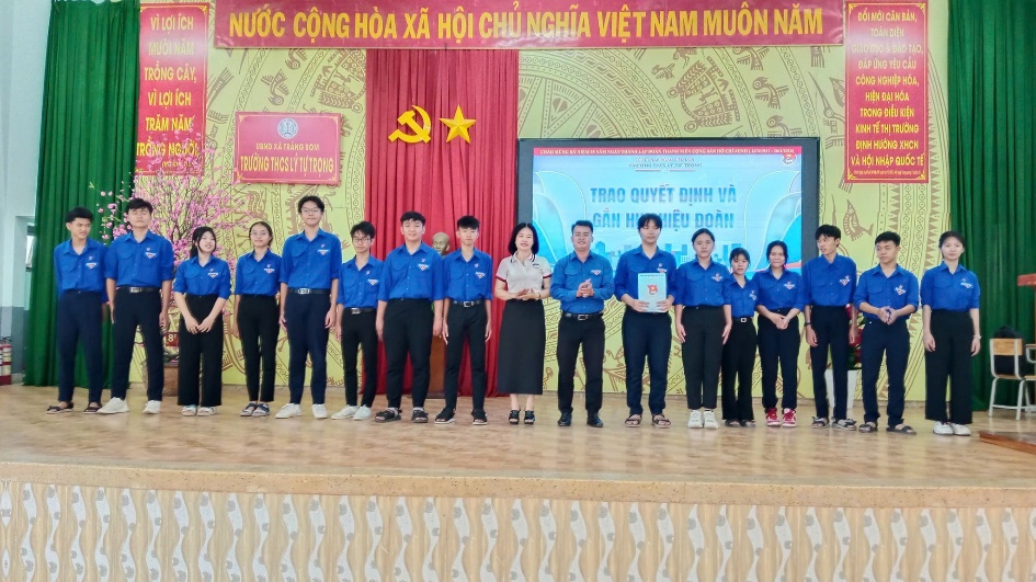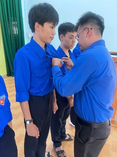 Đ/c Lê Hoàng Phụng – ĐUV, Phó Chủ tịch UB.MTTQ Việt Nam xã, Bí thư Đoàn xã dự và trao huy hiệu đoàn cho đoàn viên mới kết nạp tại trường THCS Lý Tự Trọng