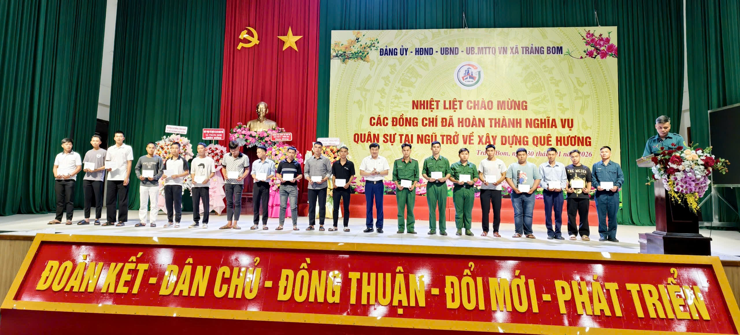 Phát biểu tại hội nghị, đại diện lãnh đạo xã Trảng Bom, Đồng chí Lê Ngọc Tiên- Phó Bí thư Đảng uỷ, chủ tịch UBND xã ghi nhận và biểu dương tinh thần trách nhiệm của các quân nhân hoàn thành nghĩa vụ quân sự trở về địa phương. Khẳng định, việc hoàn thành nghĩa vụ quân sự không chỉ là niềm vinh dự của mỗi cá nhân mà còn là niềm tự hào của gia đình và quê hương Trảng Bom. Trong môi trường quân đội, các đồng chí đã được tôi luyện về bản lĩnh chính trị, ý thức kỷ luật, tinh thần đoàn kết và trách nhiệm – đây là hành trang quý báu để tiếp tục phấn đấu trong cuộc sống và lao động sau khi xuất ngũ.
