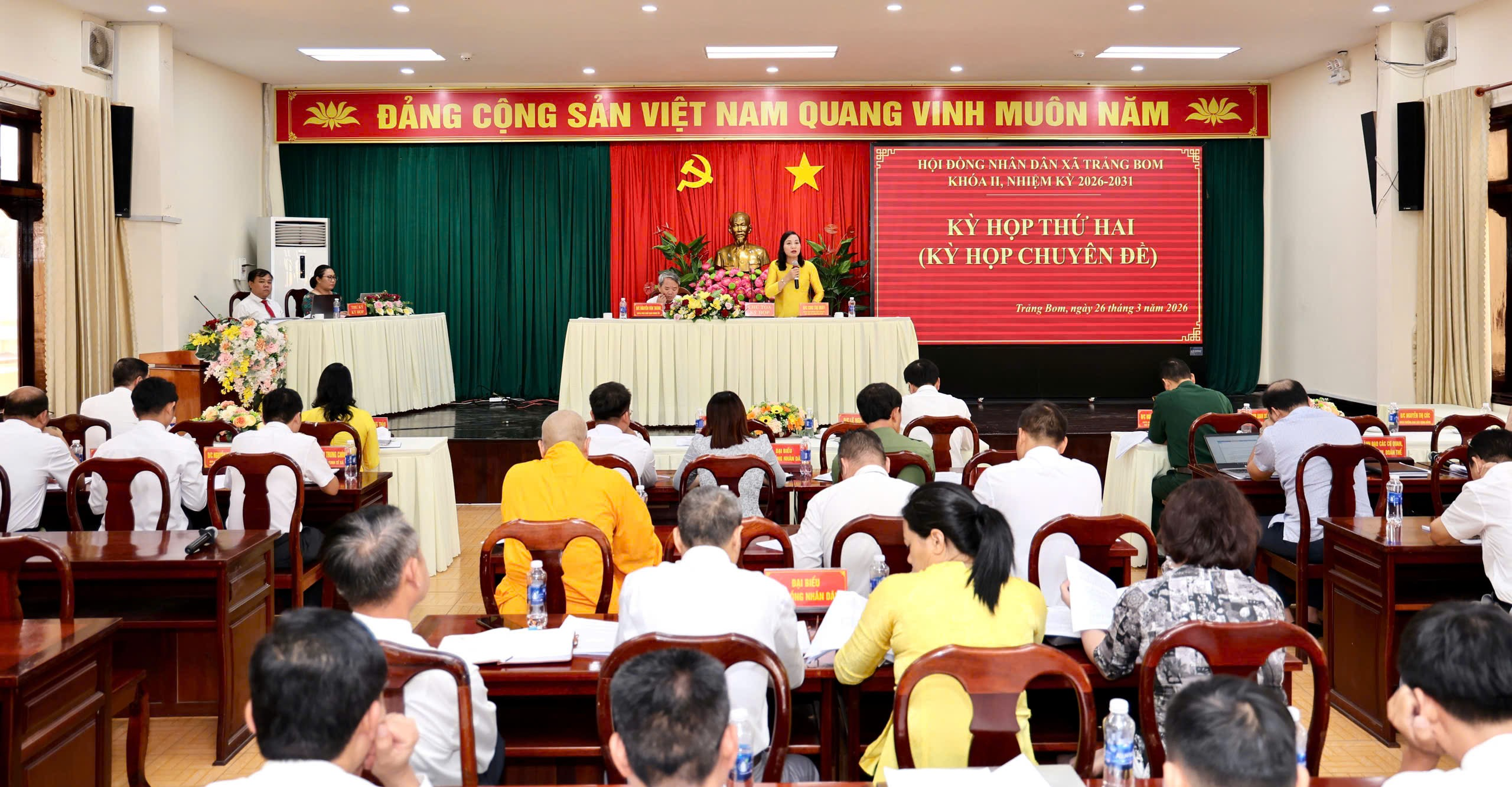 Tại kỳ họp, các đại biểu đã nghe thường trực HĐND xã Trảng Bom trình bày Tờ trình về chương trình giám sát năm 2026 của Hội đồng nhân dân xã Trảng Bom, UBND xã thông qua tờ trình về Phê chuẩn quyết toán thu ngân sách nhà nước, chi ngân sách địa phương năm 2025 xã Trảng Bom và Tờ trình về đề án thành lập phường Trảng Bom.