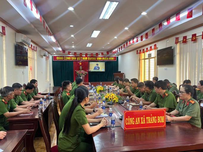 <figcaption><em>Cán bộ, đảng viên Công an xã Trảng Bom tham gia học tập Nghị quyết</em></figcaption>