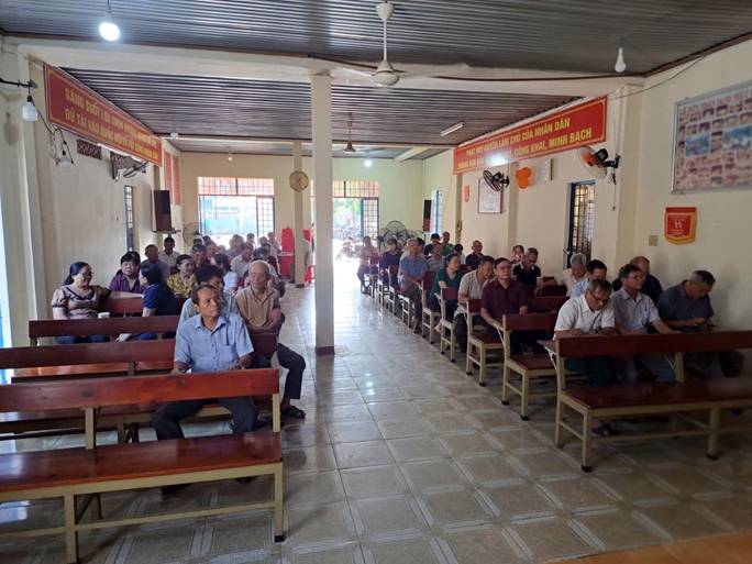 <figcaption><em>Cán bộ, đảng viên ấp 5 tham gia học tập Nghị quyết</em></figcaption>