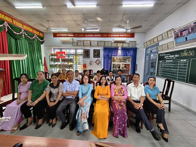 <figcaption><em>Cán bộ, đảng viên trường Tiểu học Nguyễn Bỉnh Khiêm tham gia học tập Nghị quyết</em></figcaption>