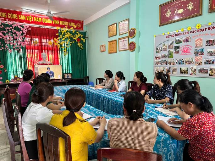 <figcaption><em>Cán bộ, đảng viên trường Mầm Non Tuổi thơ tham gia học tập Nghị quyết</em></figcaption>