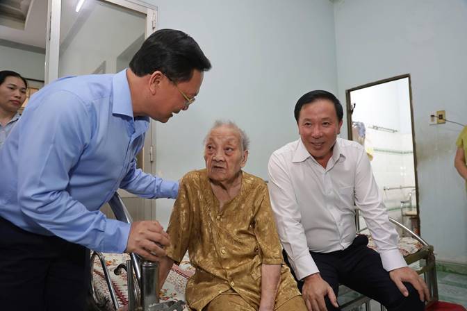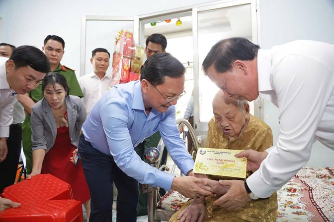 Phó Bí thư Tỉnh ủy, chủ tịch UBND tỉnh Nguyễn Văn Út chúc Tết Mẹ Việt Nam anh hùng Lê Thị Cơ