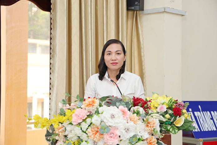<figcaption><em>Đồng chí Chu Thị Mây – Phó Bí thư thường trực Đảng uỷ, Chủ tịch HĐND xã phát biểu chỉ đạo hội nghị</em></figcaption>