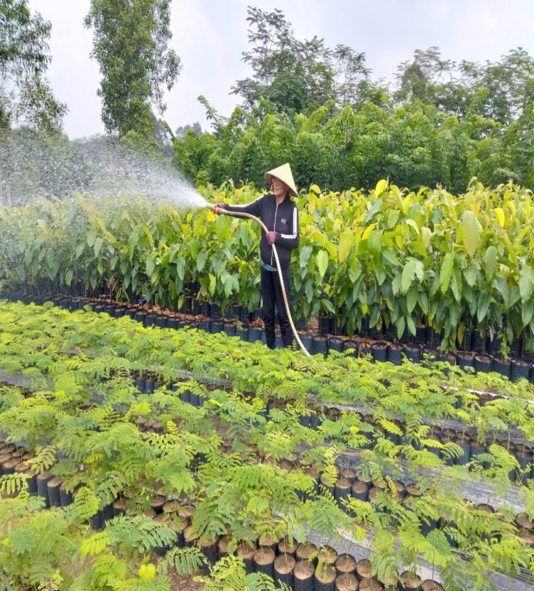 <div style="text-align: justify;"><span style="font-size:18px;"><span style="font-family:Times New Roman,Times,serif;"><span style="line-height:18.0pt">Đến nay, mô hình vườn ươm của bà đã phát triển với quy mô lên đến 1.4ha, cung cấp đa dạng các loại cây giống như cây giáng hương, xà cừ, phượng, dầu, tràm, cây lâm nghiệp và cây cảnh. Nhờ chú trọng chất lượng, áp dụng kỹ thuật chăm sóc tiên tiến, các sản phẩm cây giống của bà luôn đạt tỷ lệ sống cao, được thị trường tin tưởng. Mỗi năm, vườn ươm mang lại thu nhập gần 500 triệu đồng, góp phần nâng cao đời sống gia đình một cách bền vững.</span></span></span>