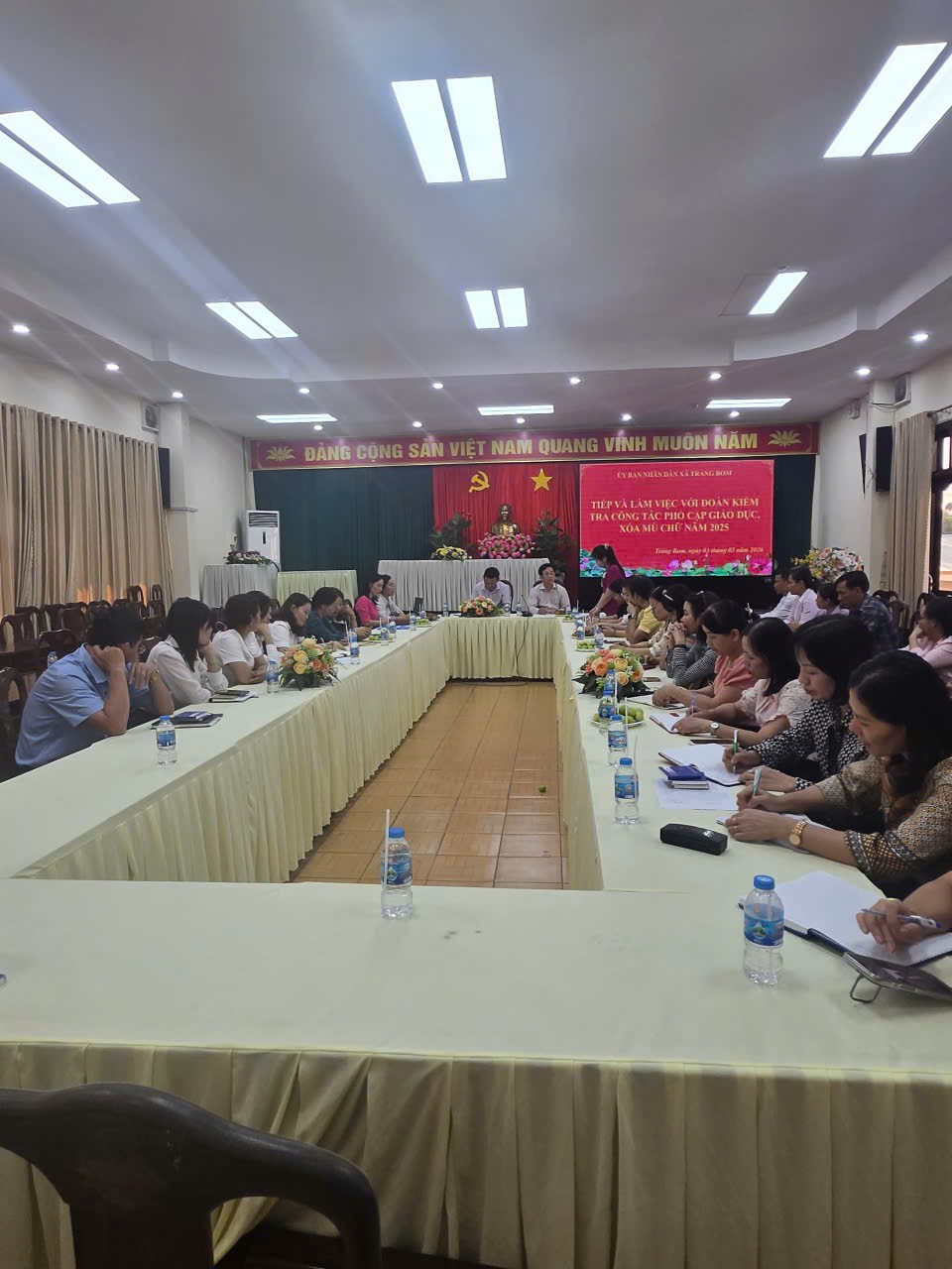 Về phía xã Trảng Bom tham dự có ông Nguyễn Văn Chiến - Phó Chủ tịch UBND xã - Trưởng Ban Chỉ đạo Phổ cập giáo dục – xóa mù chữ và xây dựng xã hội học tập (XDXHHT); bà Đào Thị Trúc Lan, Phó Trưởng Phòng Văn hoá - Xã hội, Phó Trưởng Ban Chỉ đạo PCGD-XMC và XDXHHT xã; tổ thư ký giúp việc cho Ban Chỉ đạo PCGD, XMC và XDXHHT xã; Hiệu trưởng và viên chức phụ trách công tác PCGD, XMC các trường công lập trực thuộc.