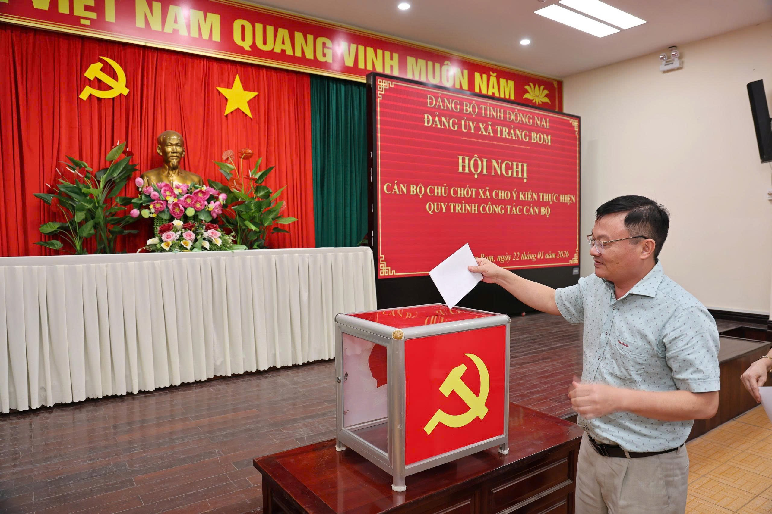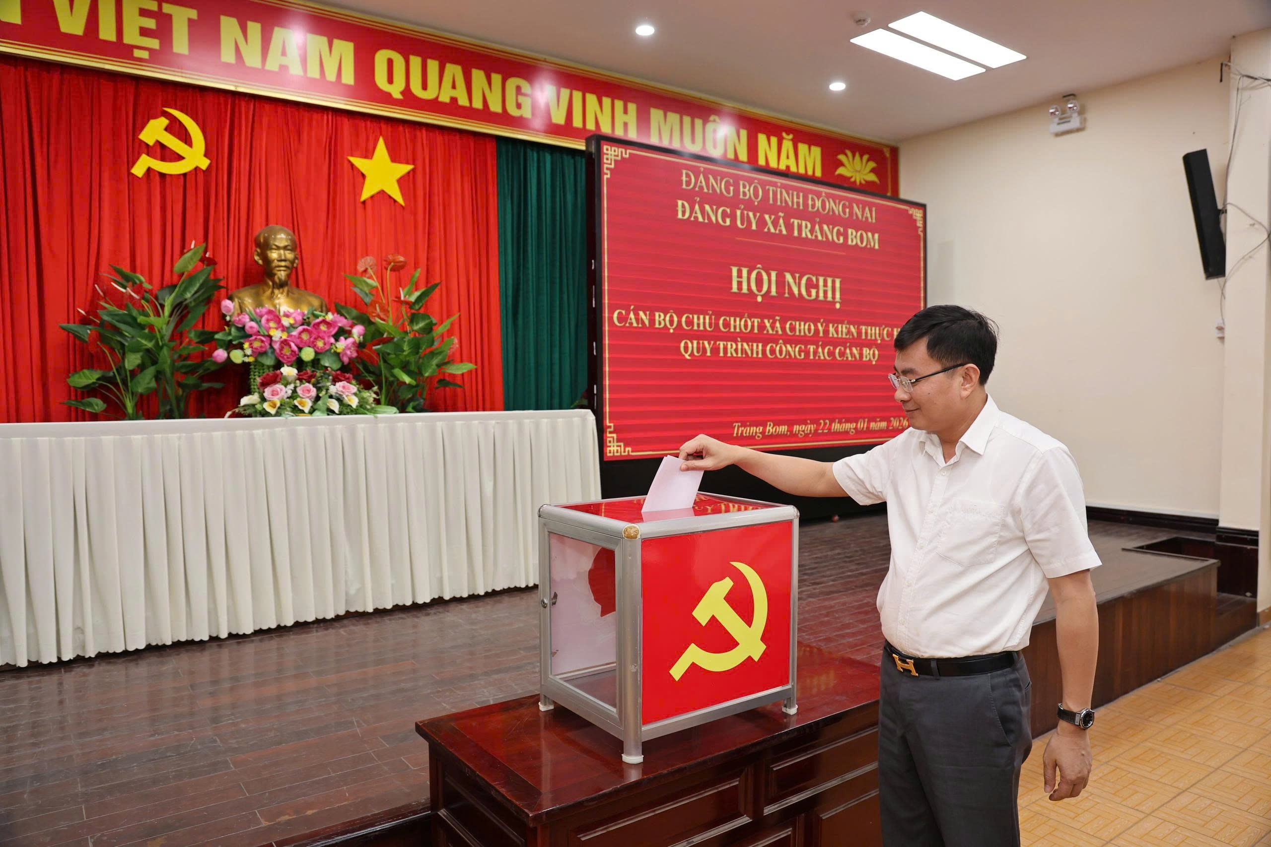 Tại hội nghị, đồng chí Nguyễn Thị Cúc – Uỷ viên Ban Thường vụ Đảng uỷ, Trưởng Ban Xây dựng Đảng đã thông qua tờ trình về giới thiệu nhân sự ứng cử chức danh lãnh đạo HĐND, UBND xã Trảng Bom nhiệm kỳ 2026-2031; dự thảo kết luận nhận xét, đánh giá của Ban Thường vụ Đảng uỷ đối với 05 đồng chí dự kiến tái cử chức danh lãnh đạo HĐND, UBND xã Trảng Bom nhiệm kỳ 2026-2031.