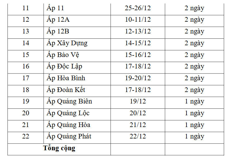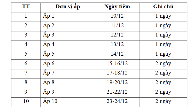 - Đề nghị Trưởng các ấp và Tổ trưởng dân cư phối hợp dẫn đường để Tổ tiêm phòng thực hiện tiêm phòng theo Kế hoạch.