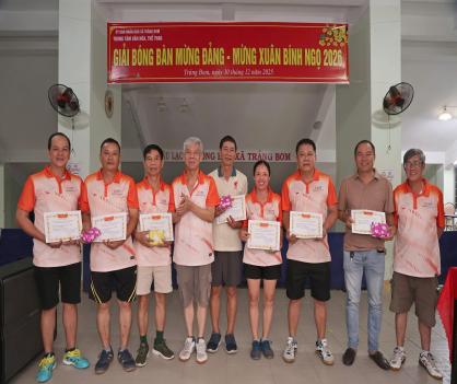 Các vận động viên lên nhận thưởng Giải Bóng bàn “Mừng Đảng – Mừng Xuân 2026”