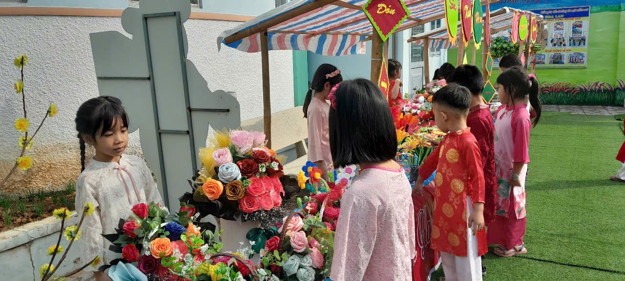 Còn ở Trường mẫu giáo Hoa Lan, mầm non Tuổi thơ, THCS Hùng Vương không khí lại náo nhiệt theo một cách rất riêng với hoạt động trải nghiệm "Chợ quê Ngày Tết". Học sinh không còn là những người đứng ngoài quan sát mà trực tiếp trở thành những "tiểu thương" nhí tại các gian hàng dân gian, ẩm thực truyền thống. Tiếng rao hàng, tiếng cười nói và cả những giao dịch mua bán bằng các phiếu quà tặng đã giúp các em rèn luyện kỹ năng giao tiếp, làm việc nhóm và đặc biệt là sự trân trọng giá trị lao động.
