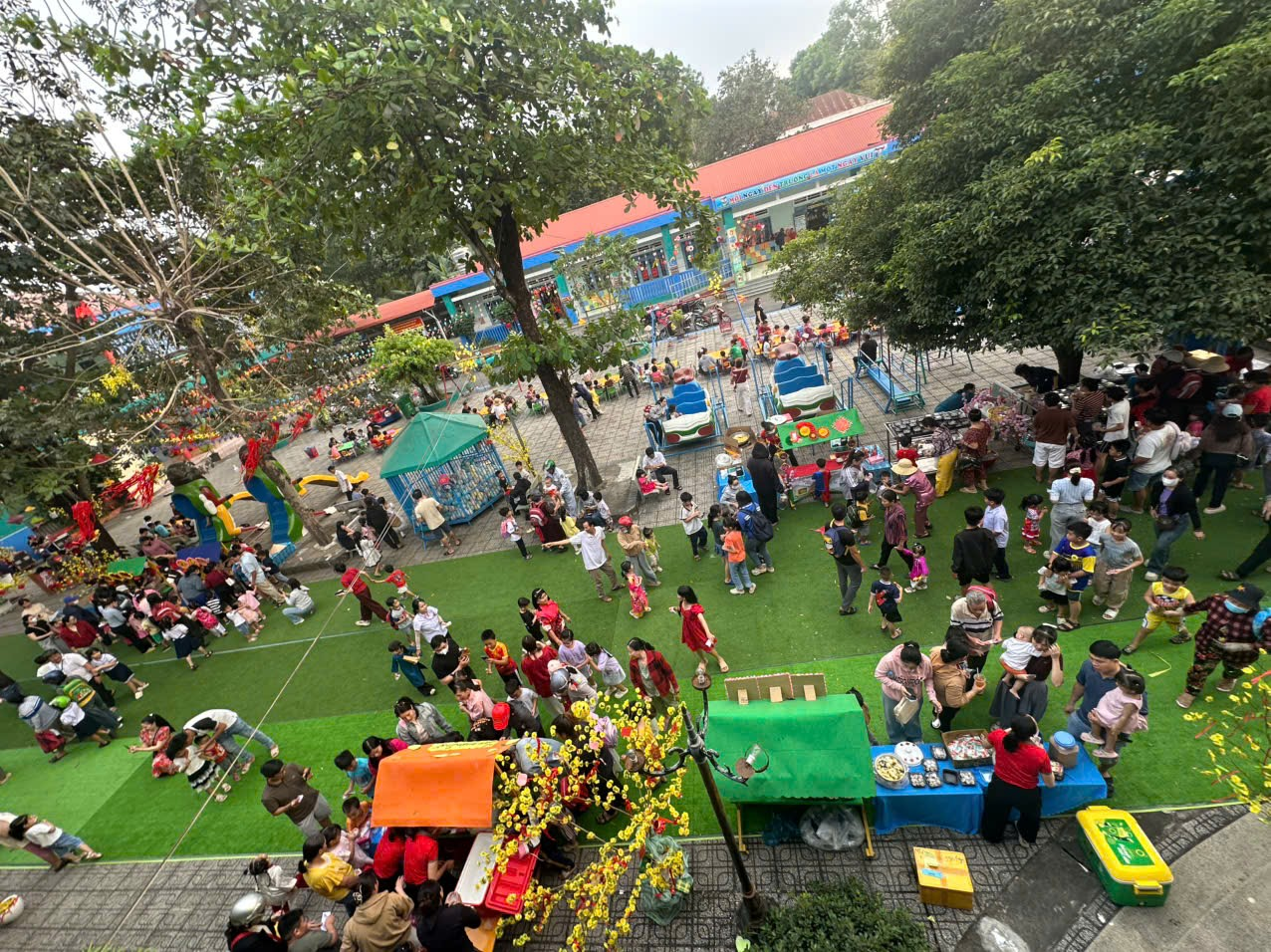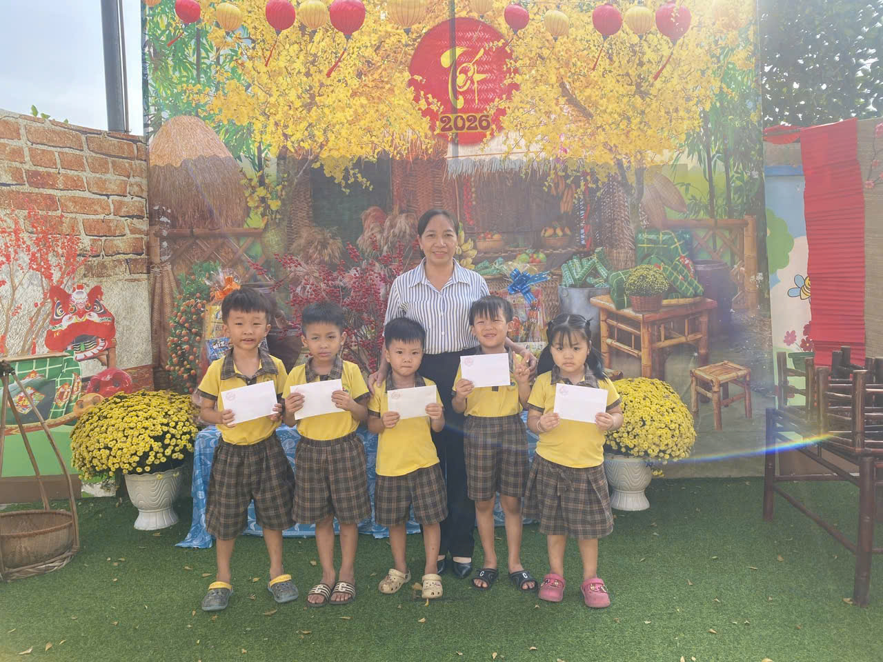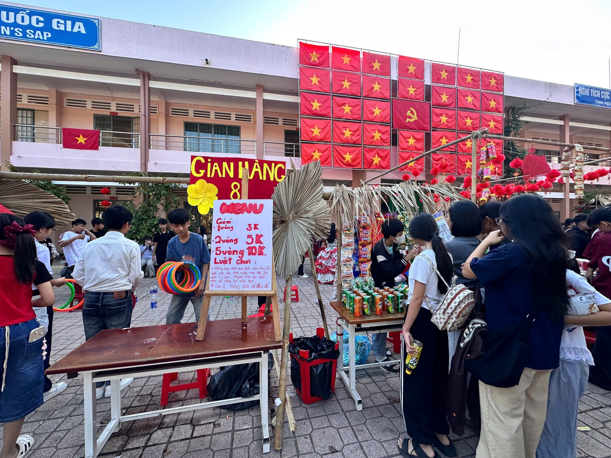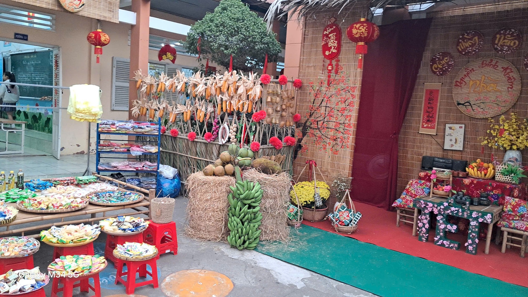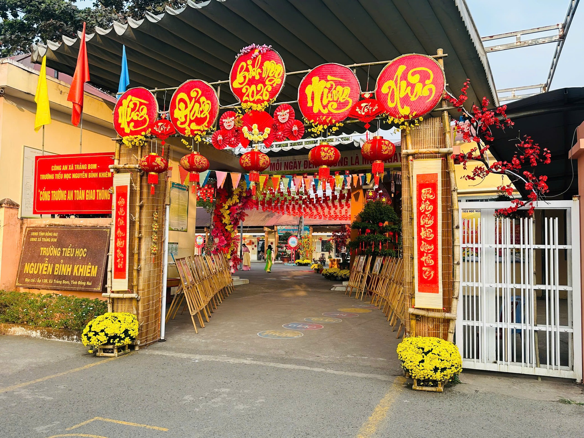 Tại Trường Tiểu học Nguyễn Bỉnh Khiêm, giữa sân trường, một không gian Tết Việt được tái hiện kỳ công, đưa người xem ngược dòng thời gian về với những giá trị cốt lõi của dân tộc.